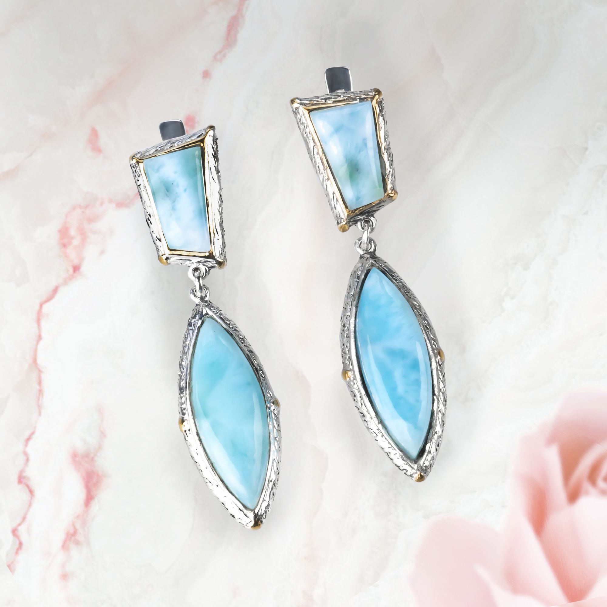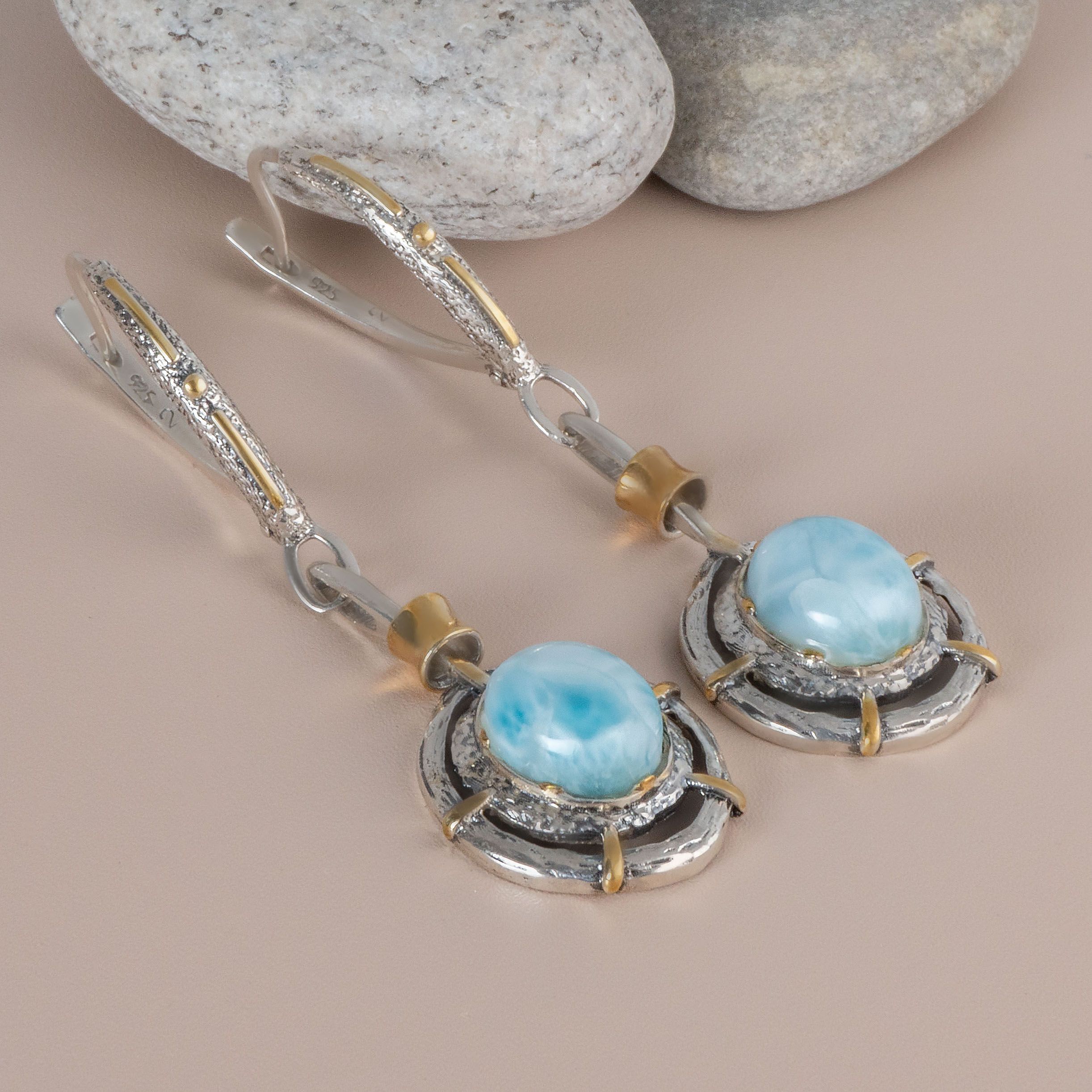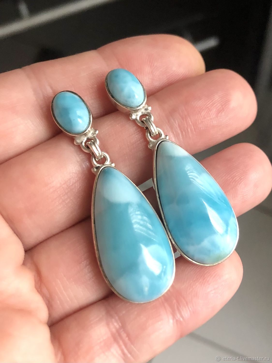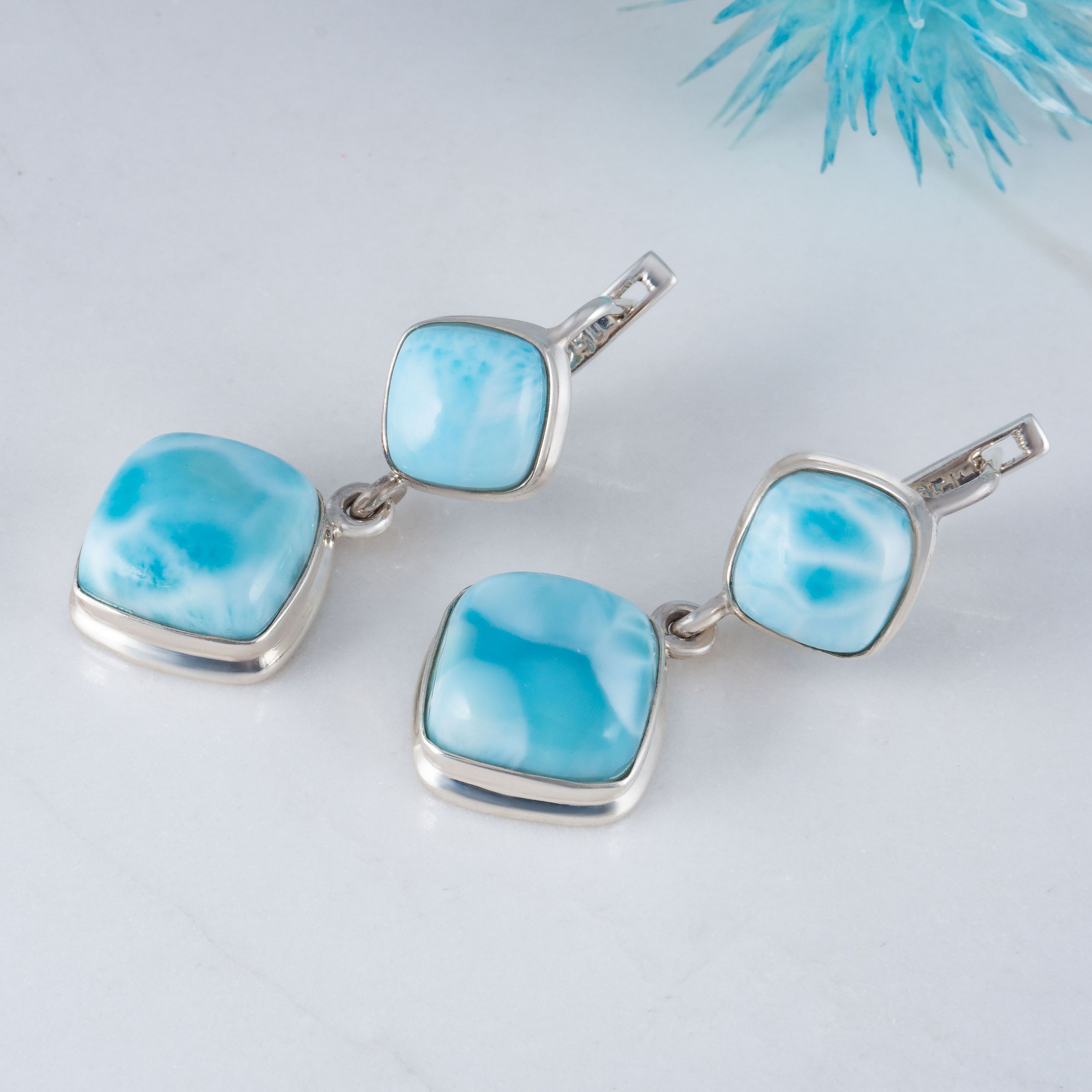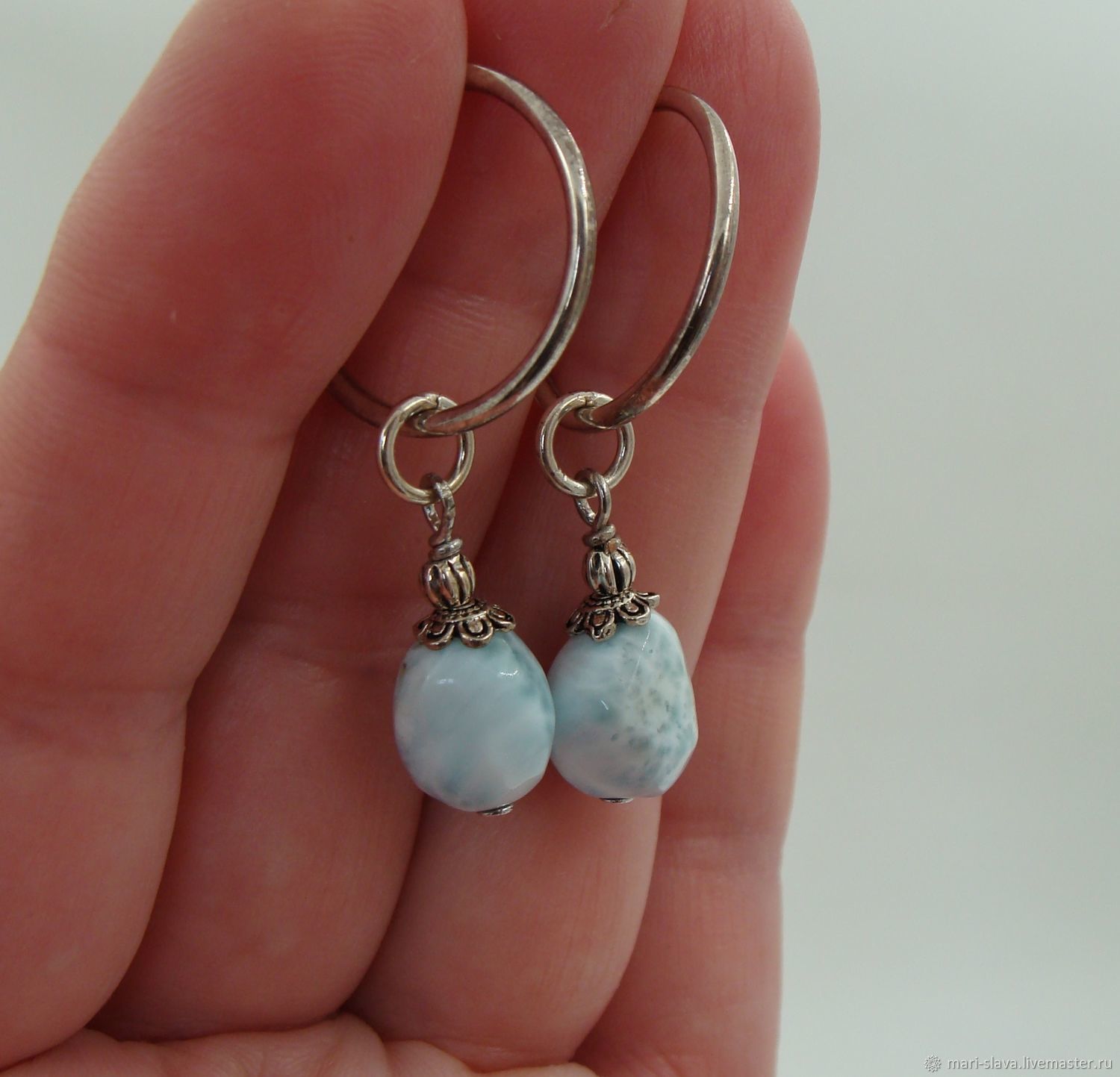 Серьги с ларимаром в серебре 123 фотографий