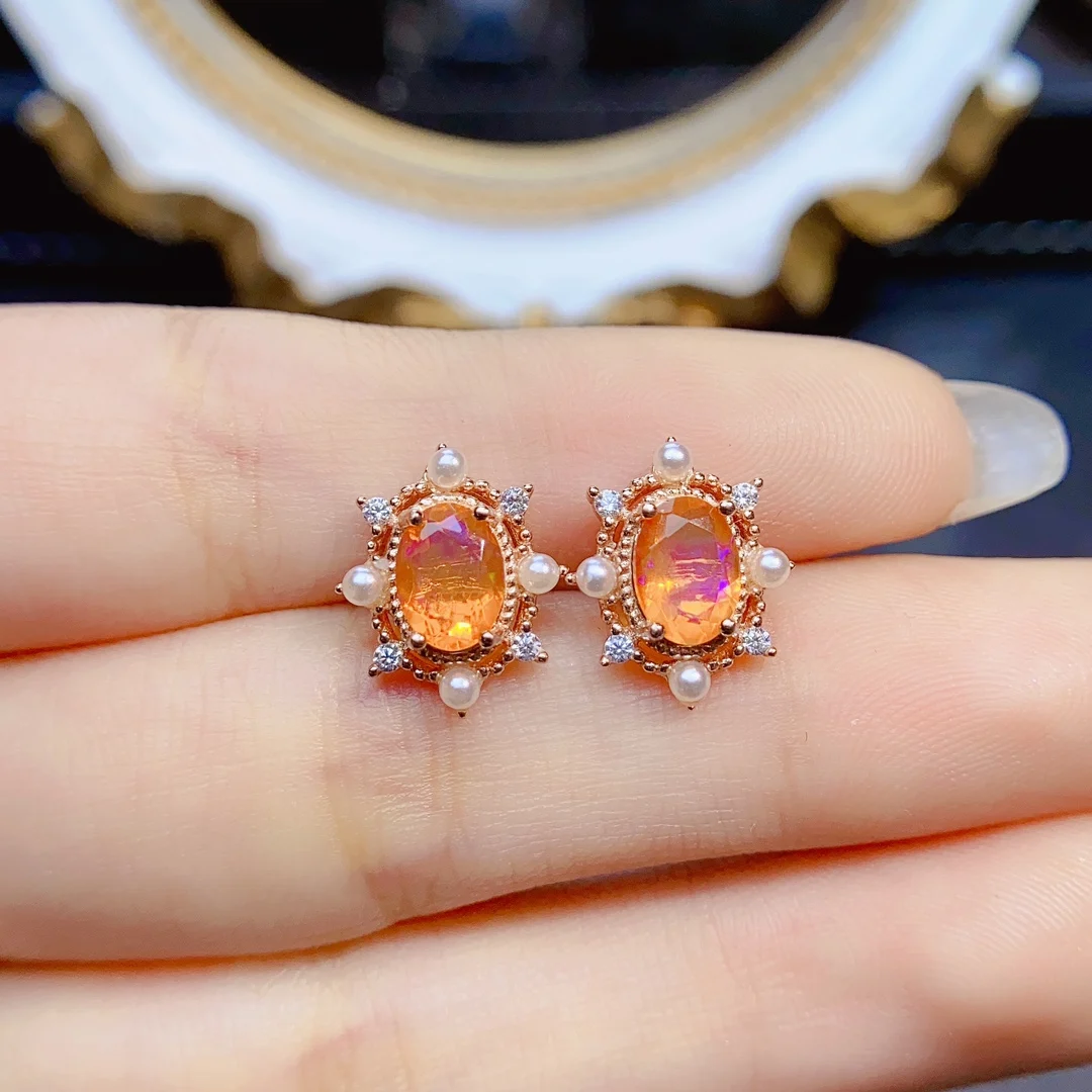Серьги с огненным опалом