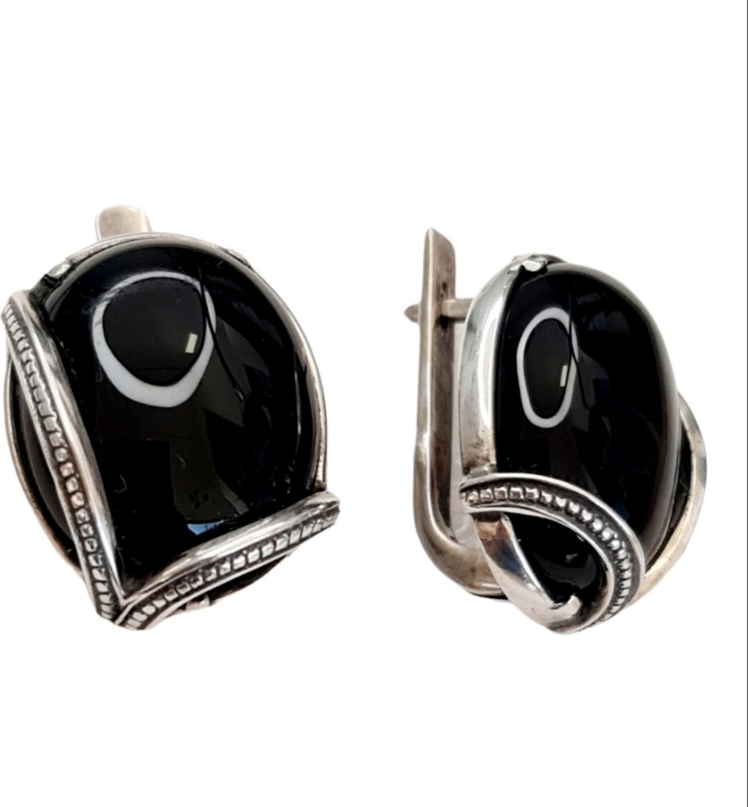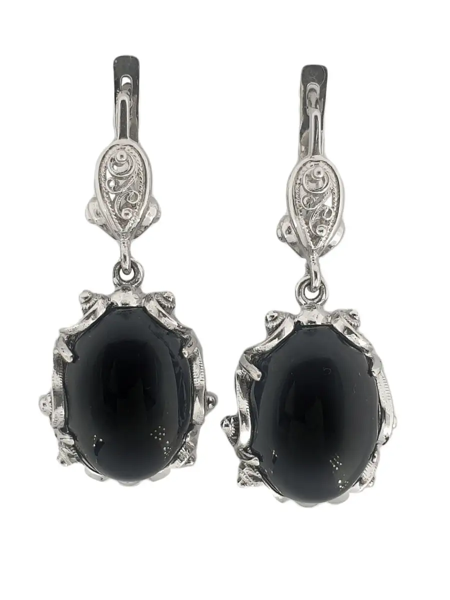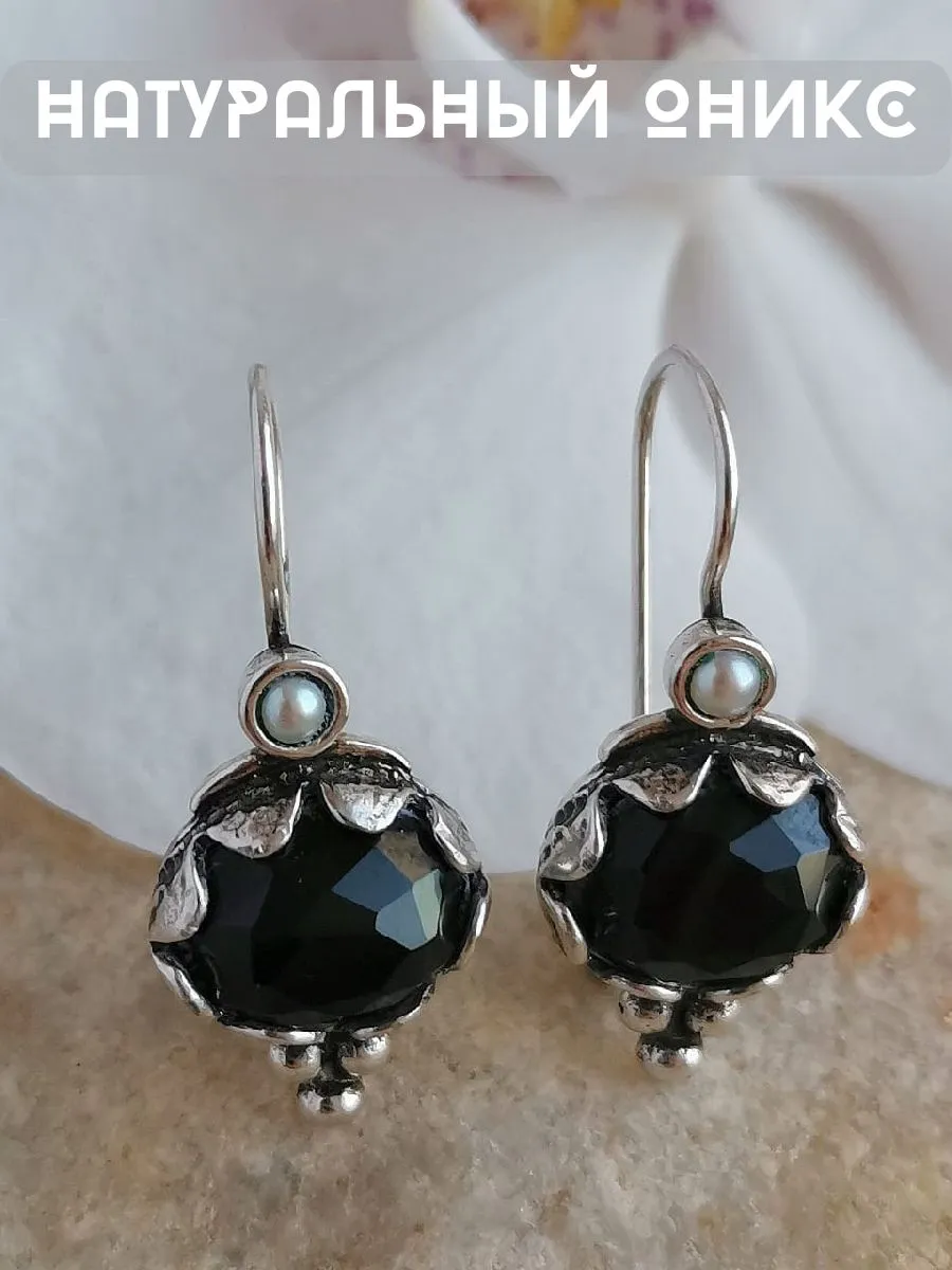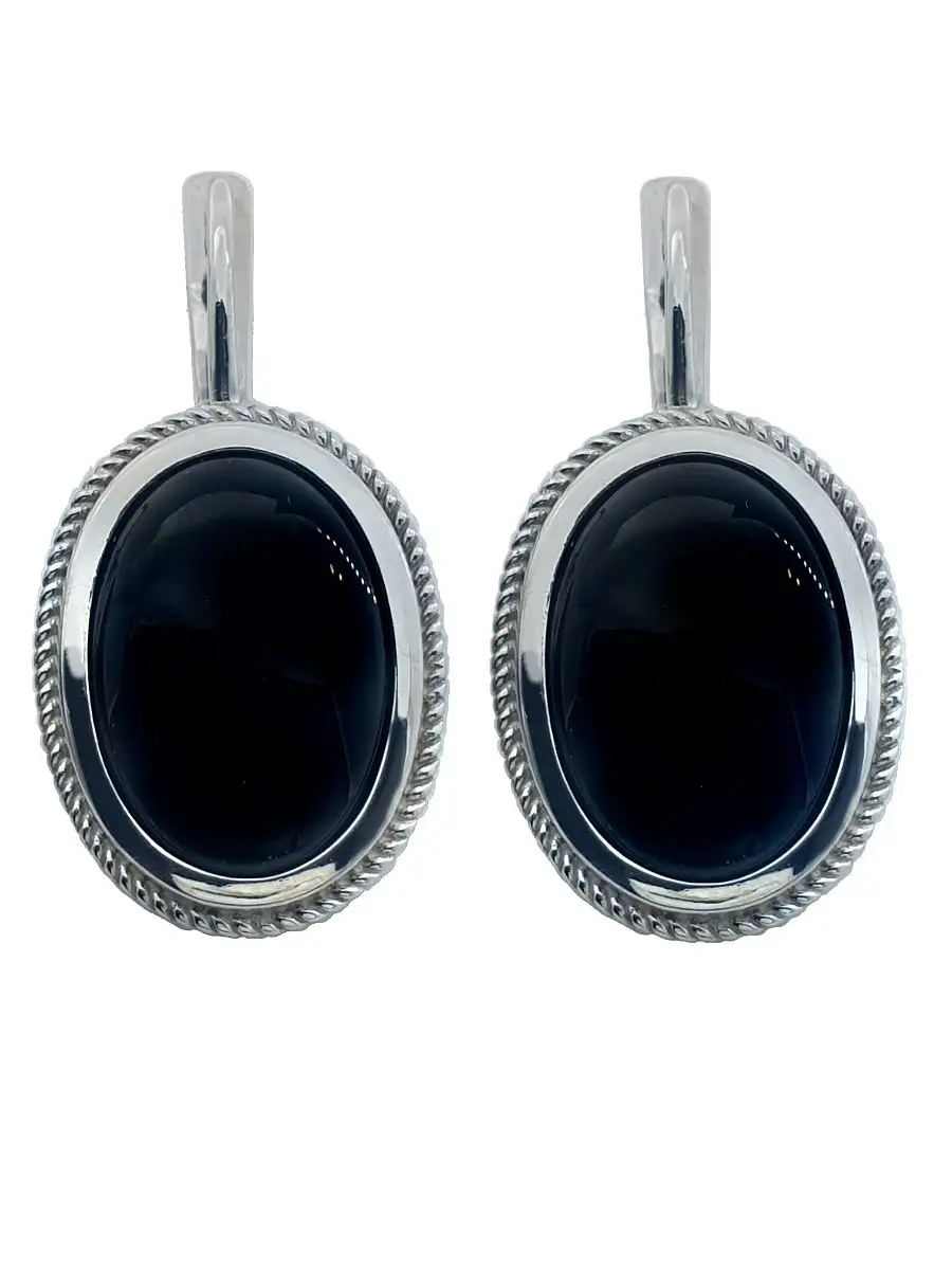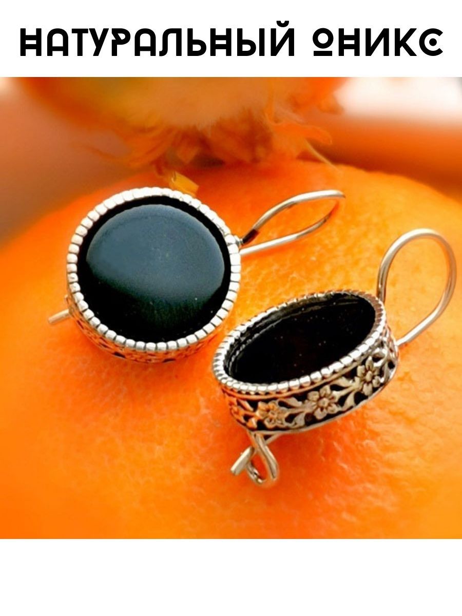 Серьги с ониксом в серебре 122 фото
