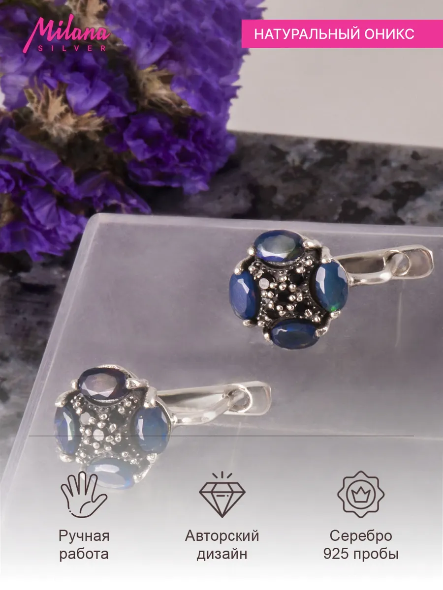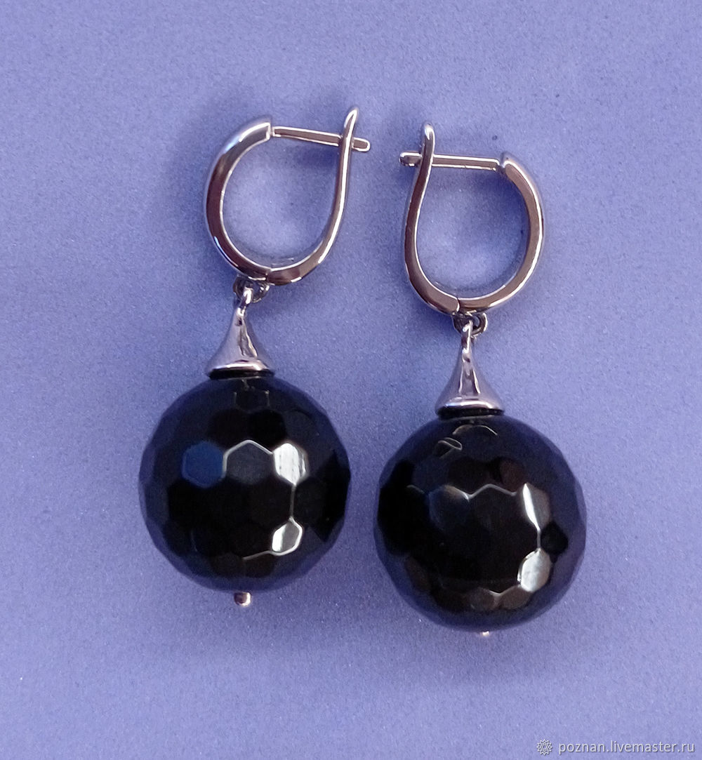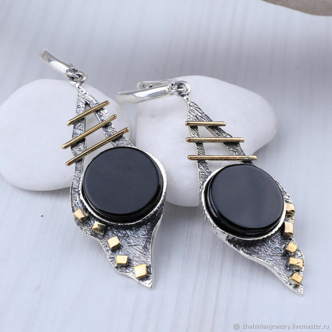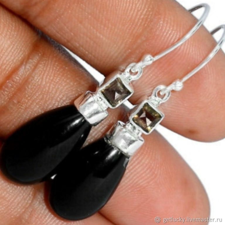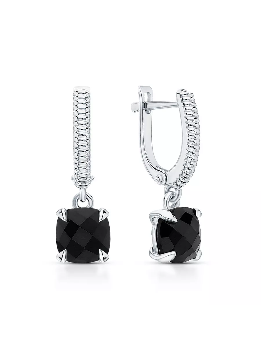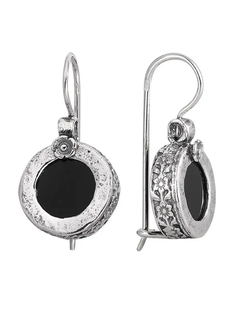 Серьги с ониксом в серебре 122 фото