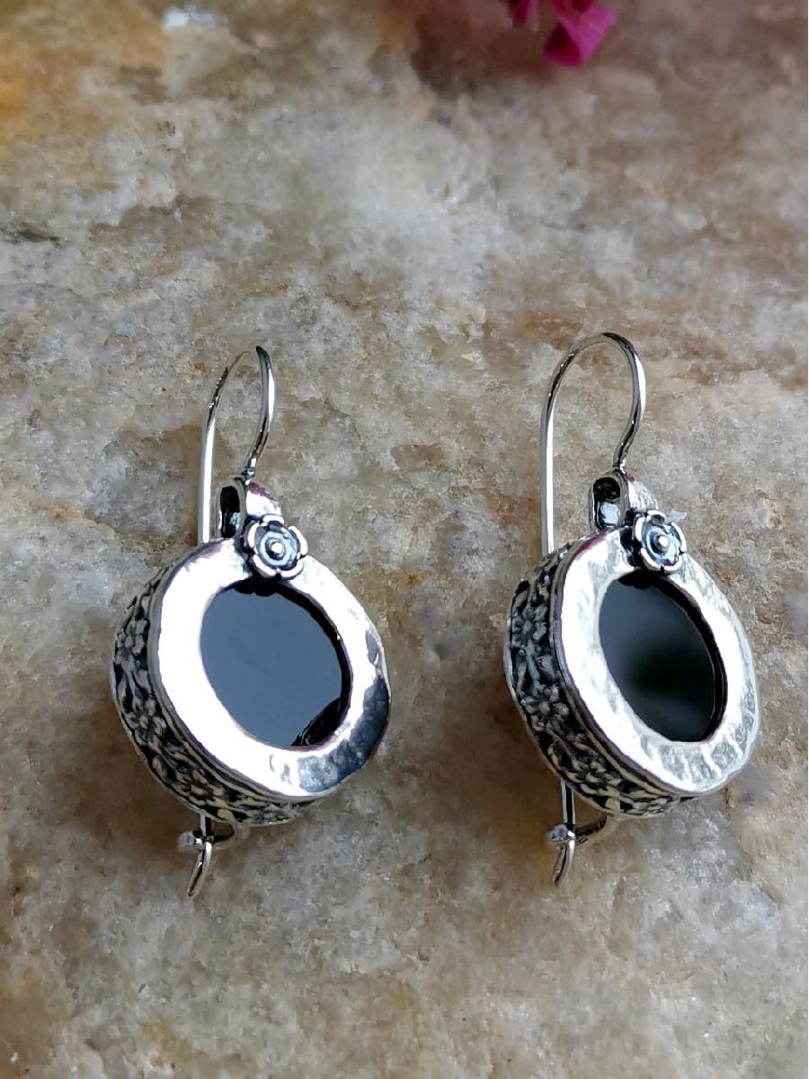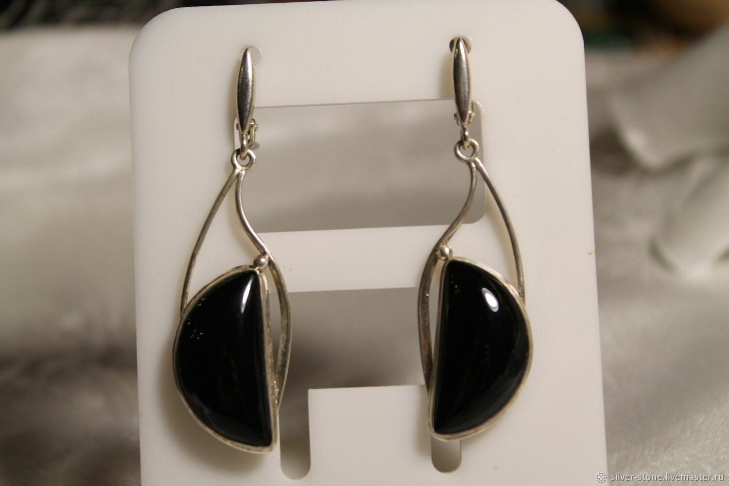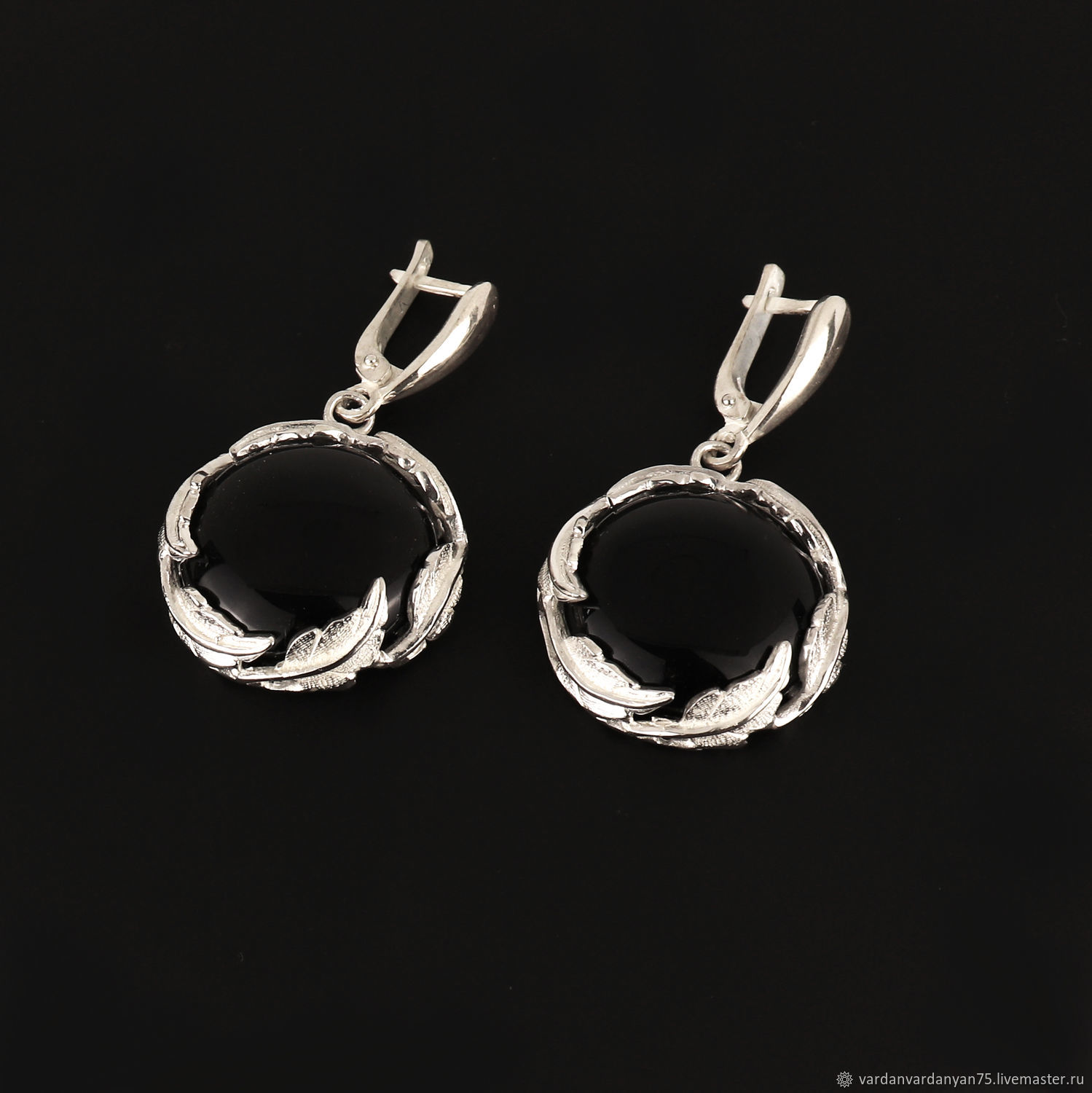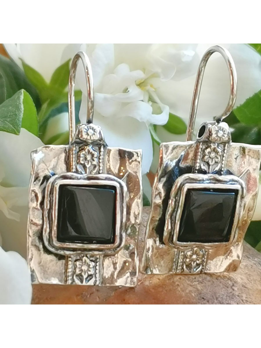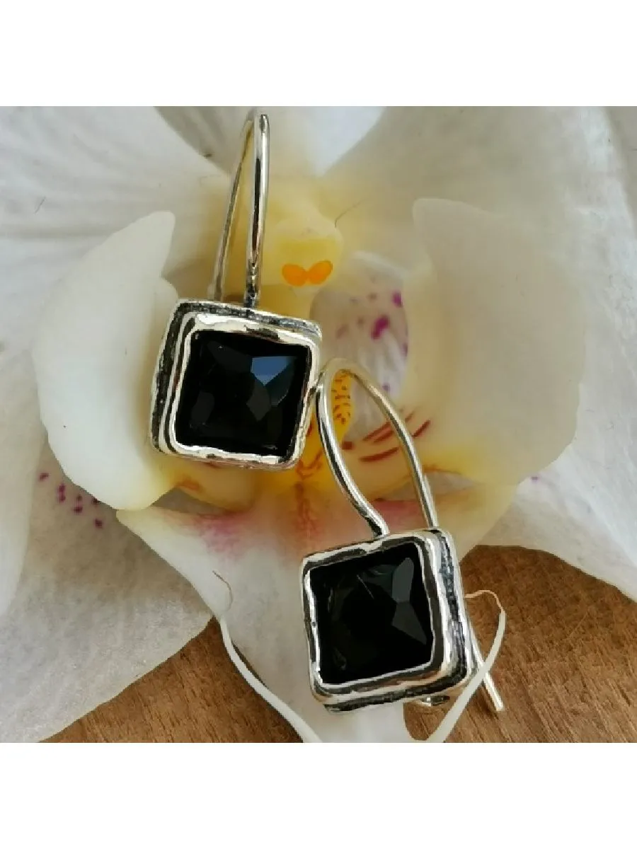 Серьги с ониксом в серебре 122 фото