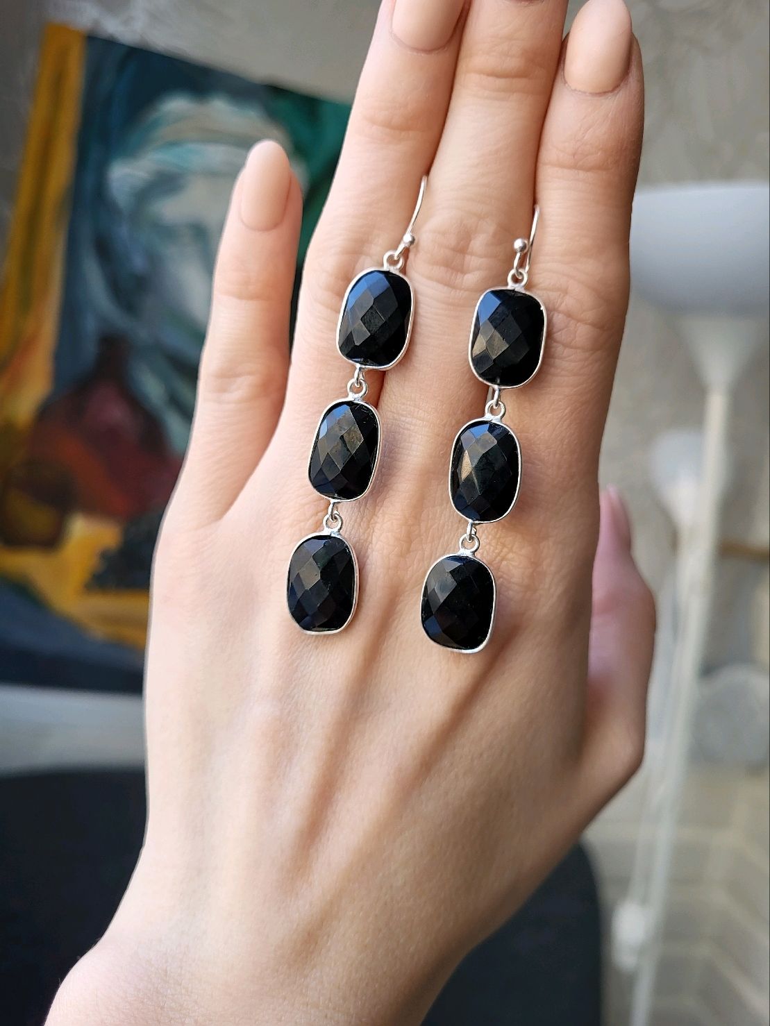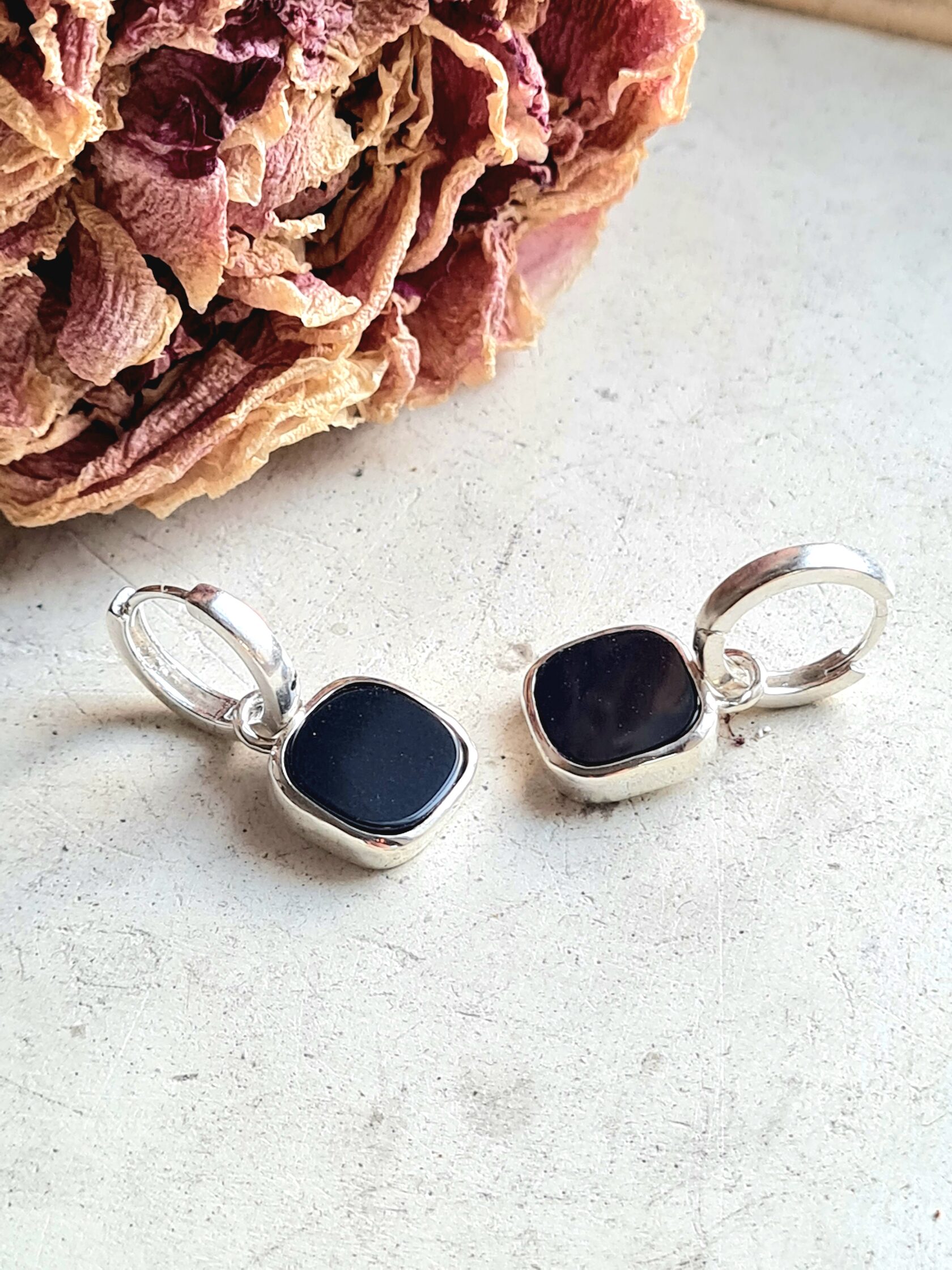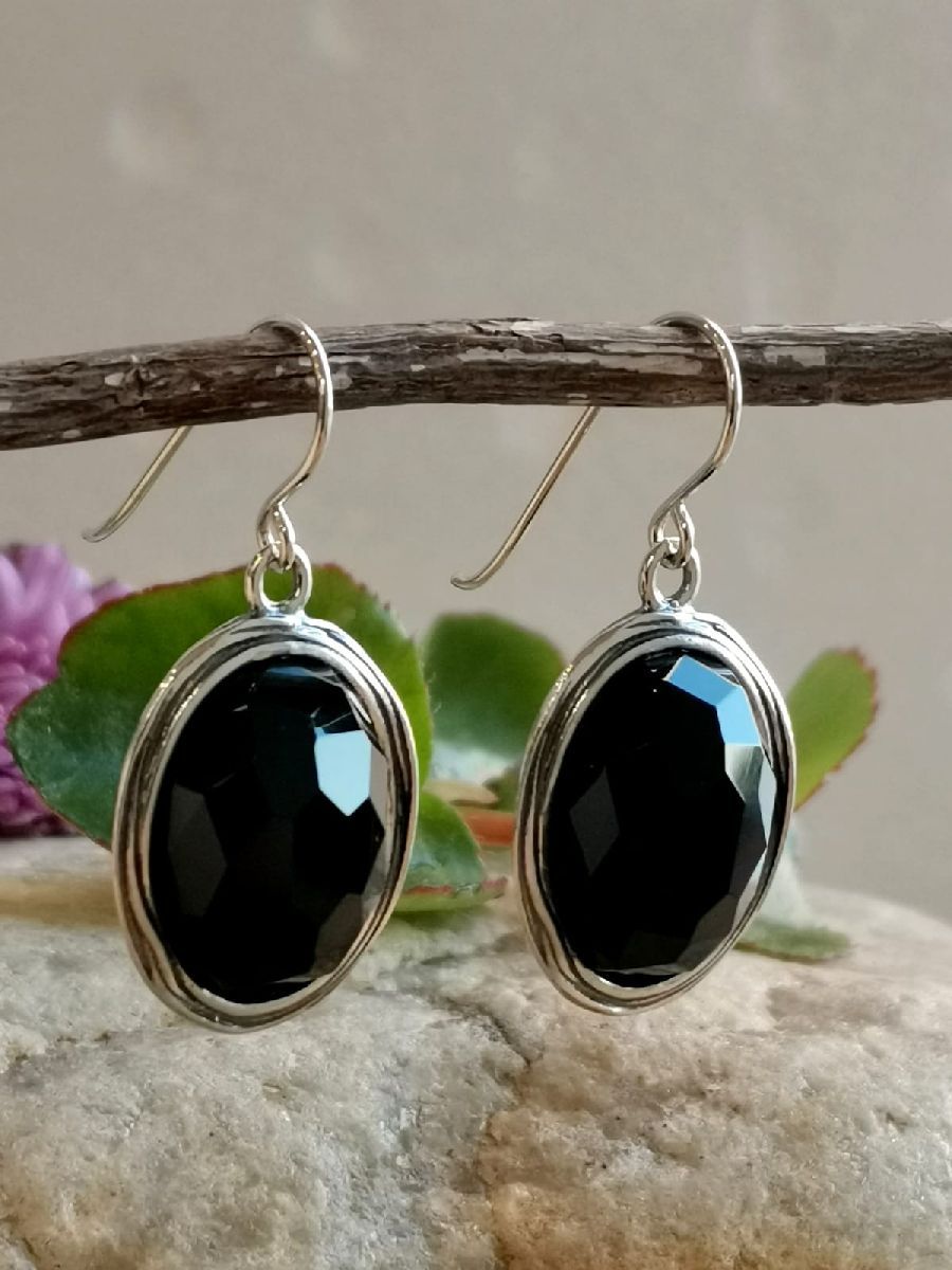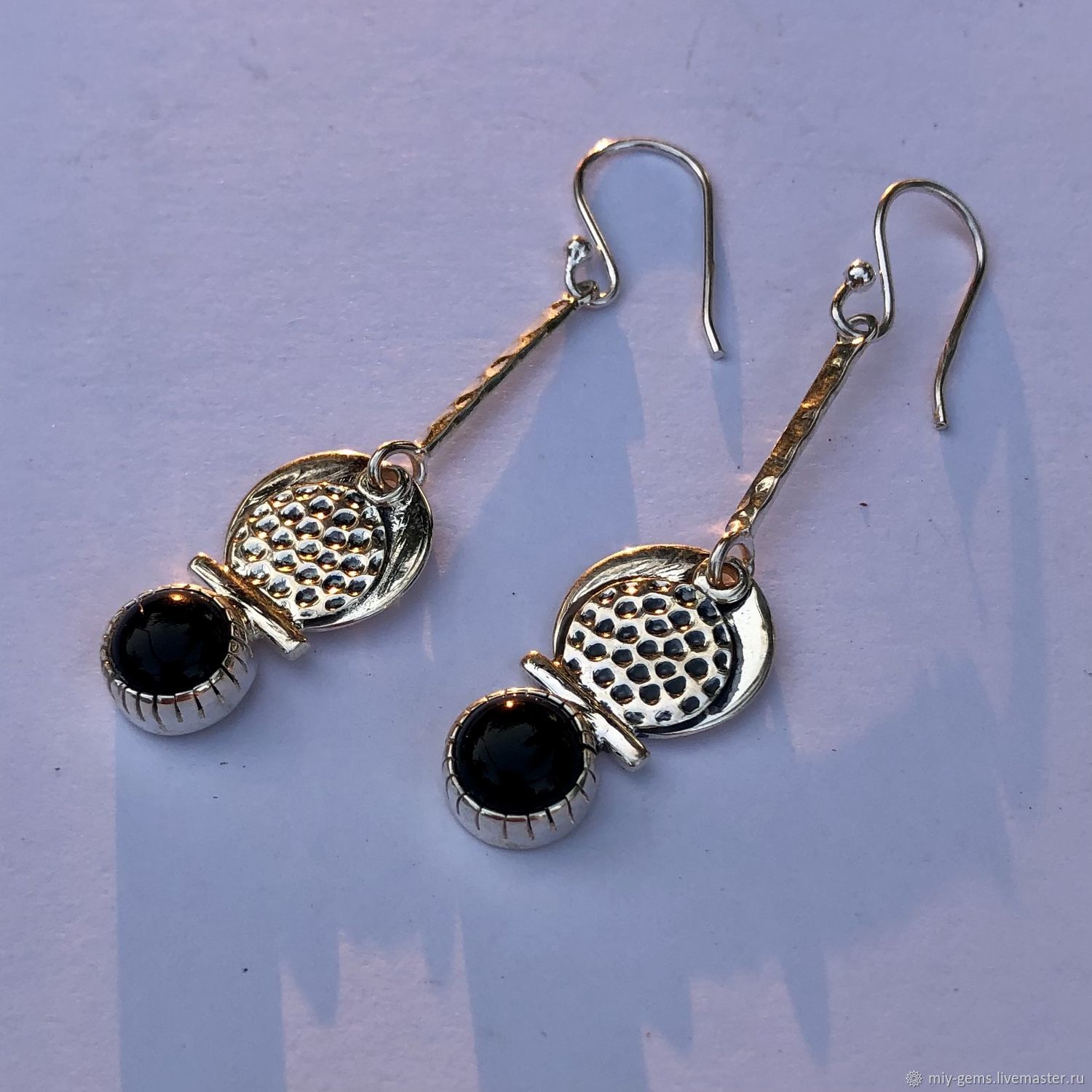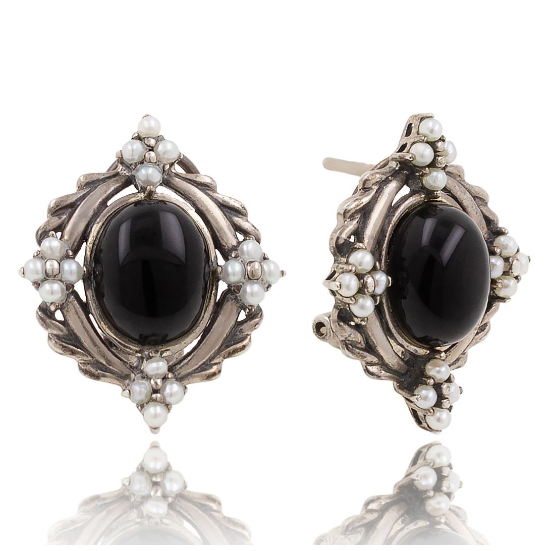 Серьги с ониксом в серебре 122 фото