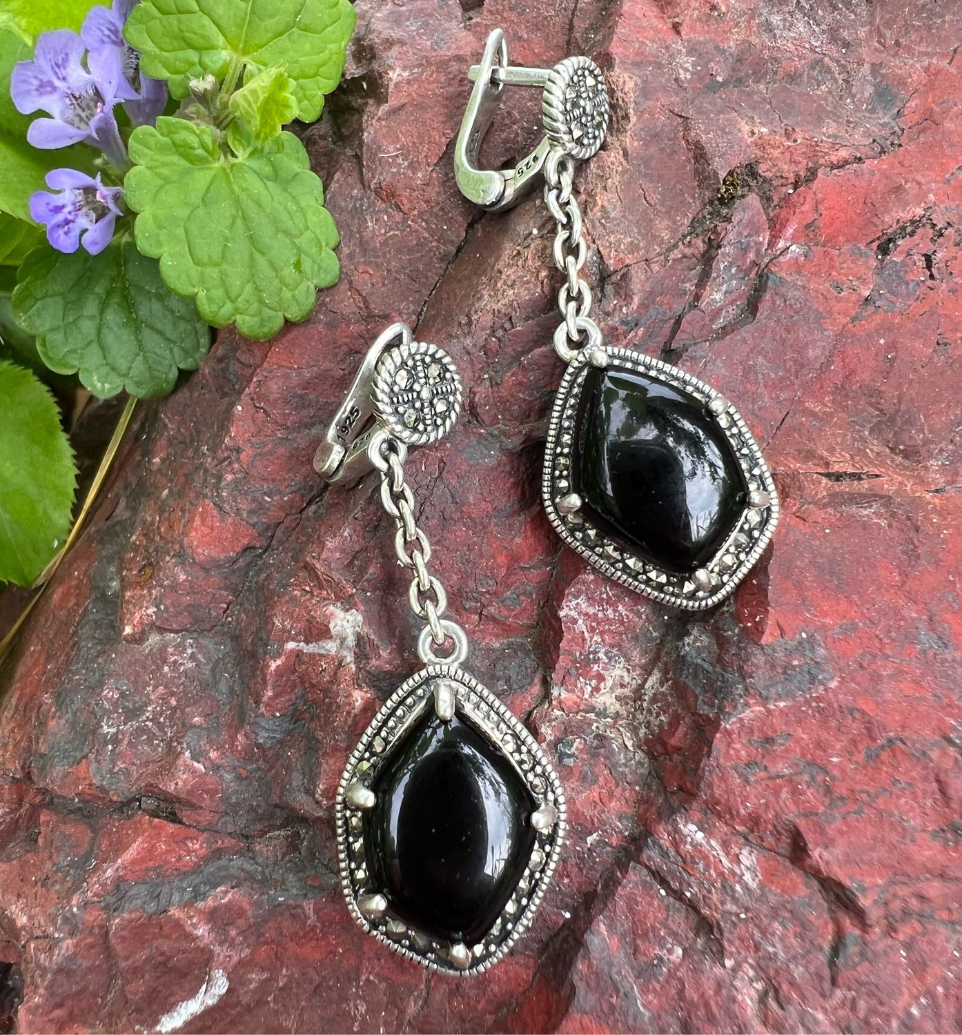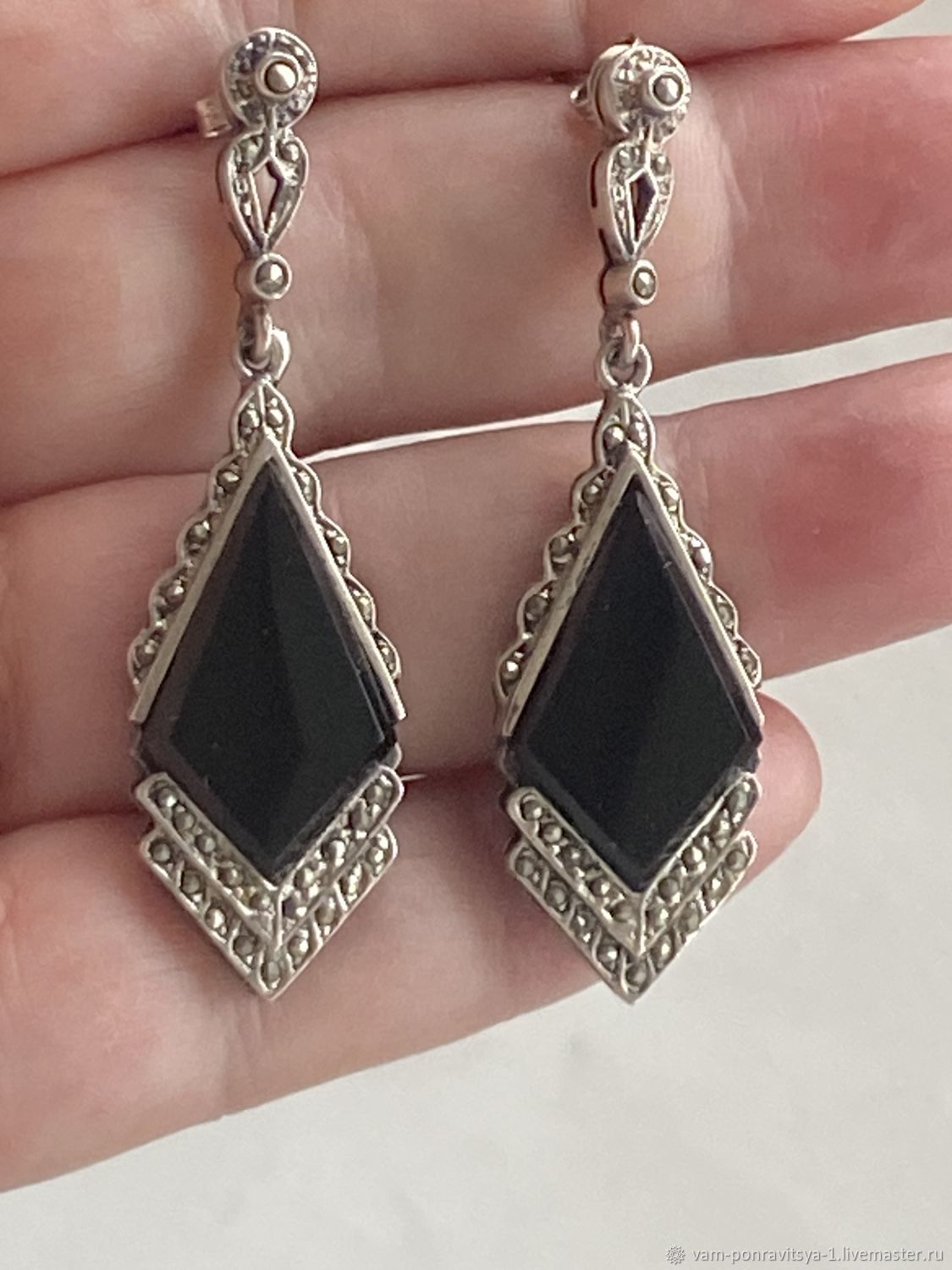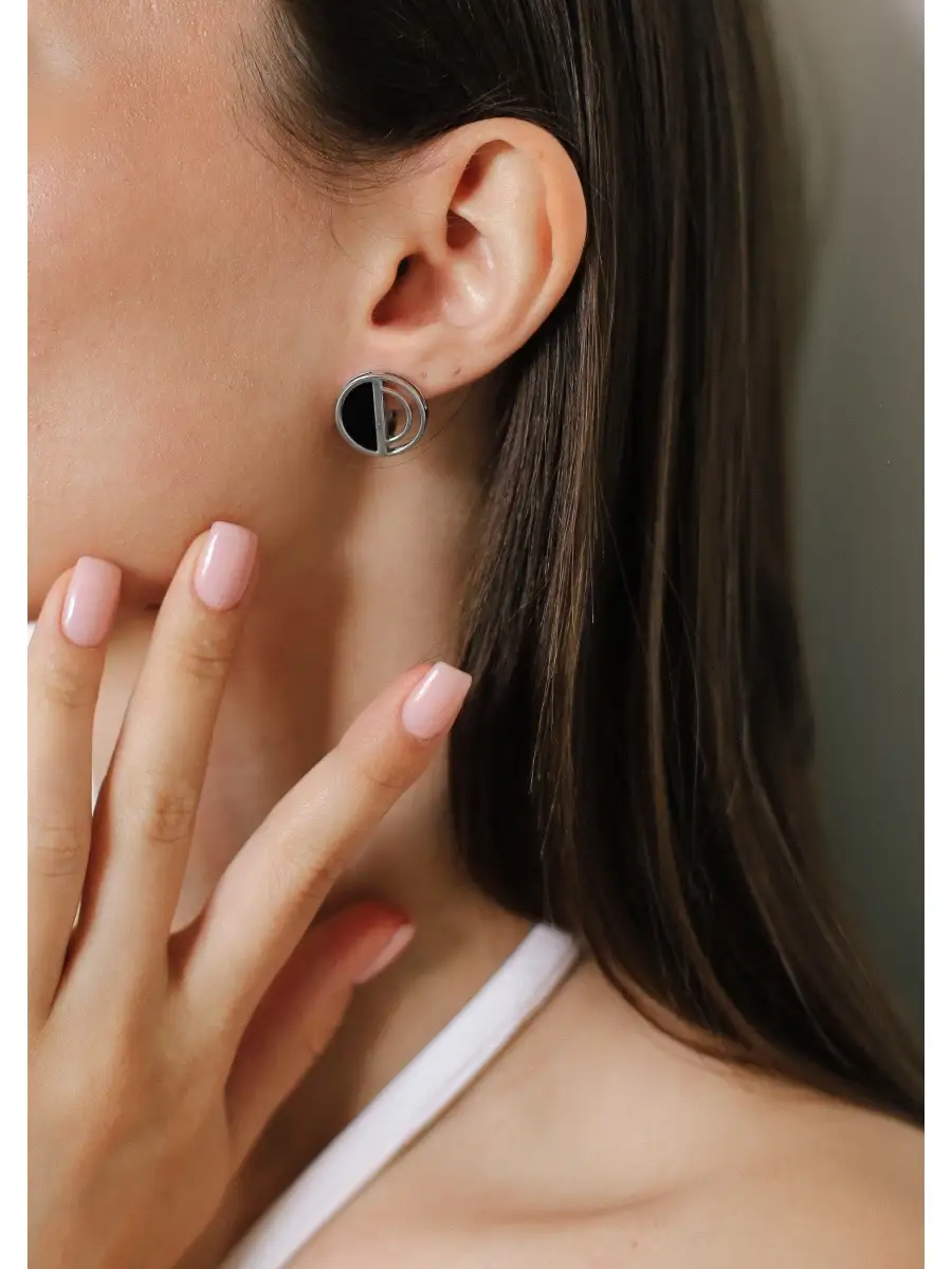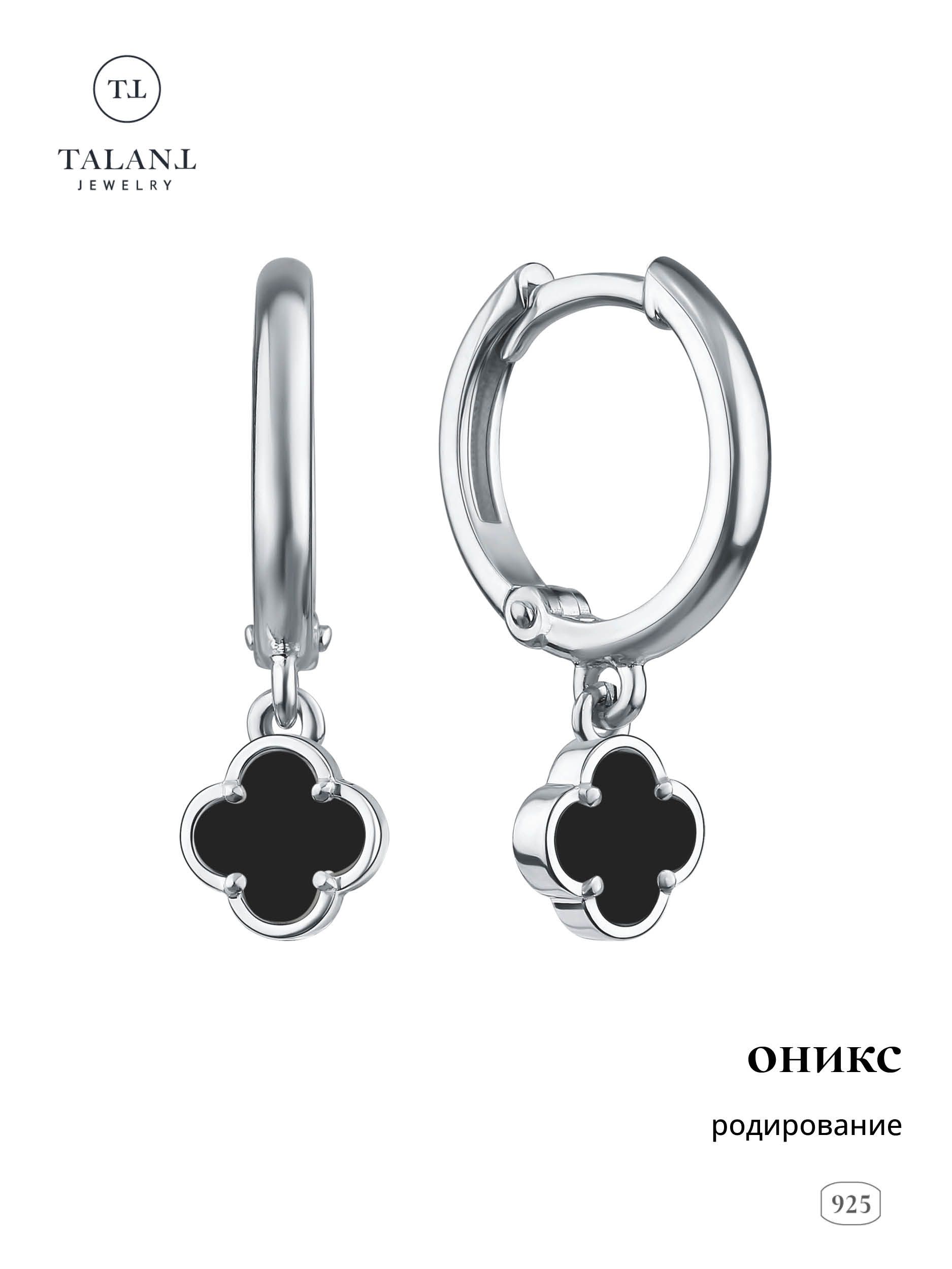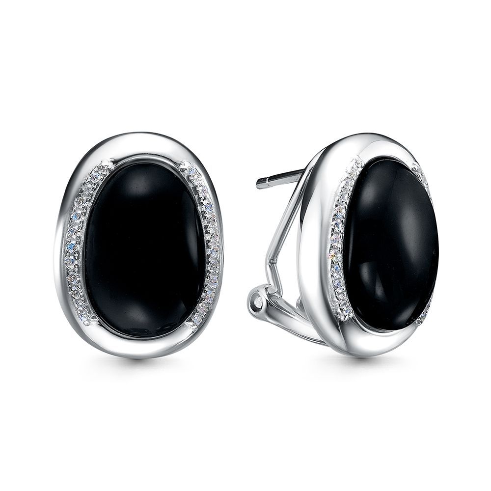 Серьги с ониксом в серебре