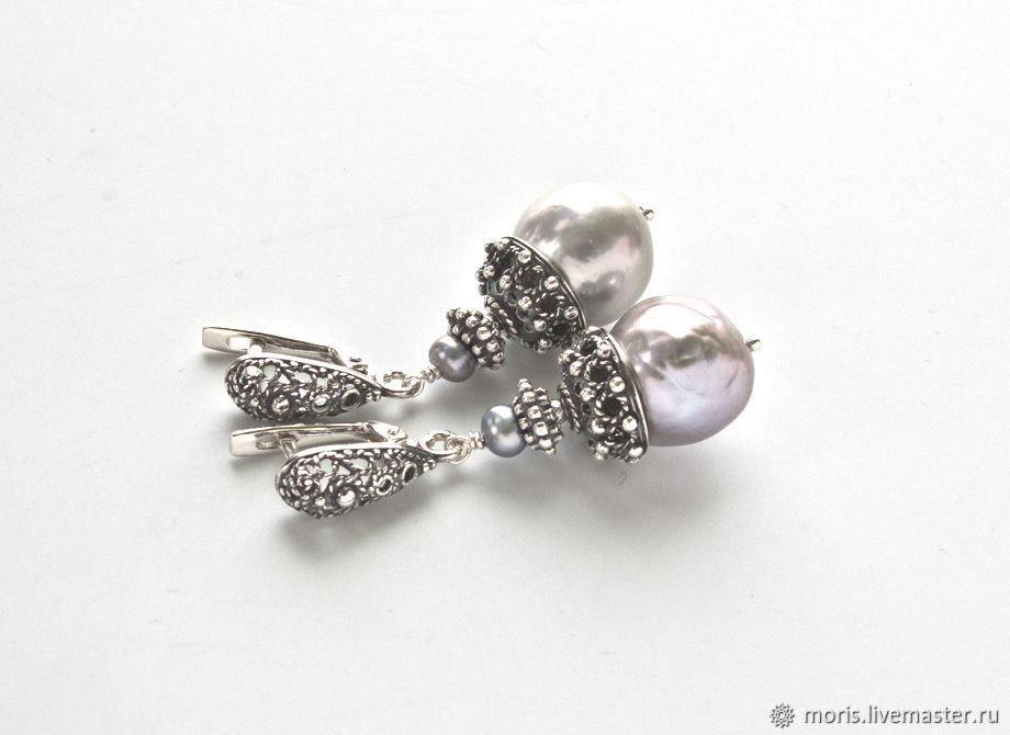 Серьги с серым жемчугом 147 фотографий