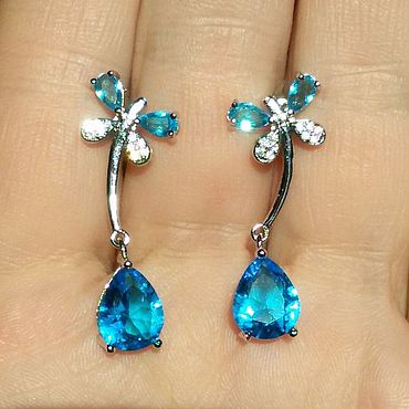 Серьги с синим топазом