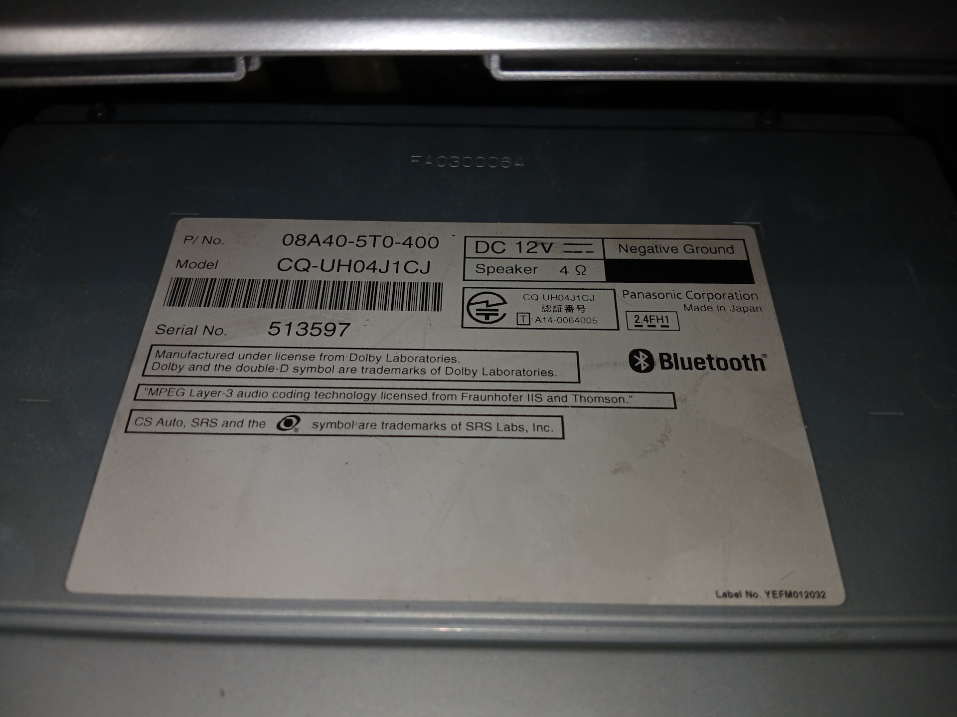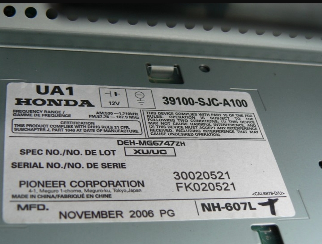 Серийный номер автомагнитолы