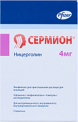 Описание актуально на 19 .06 .2014 Латинское название: Sermion Код АТХ: C04AE02 Действующее вещество: Ницерголин (Nicergoline) Производитель: Pfizer Italia