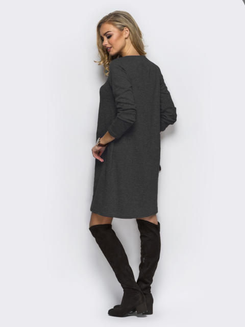 Темно-серое платье-трапеция с меховой изнанкой и крупными ...