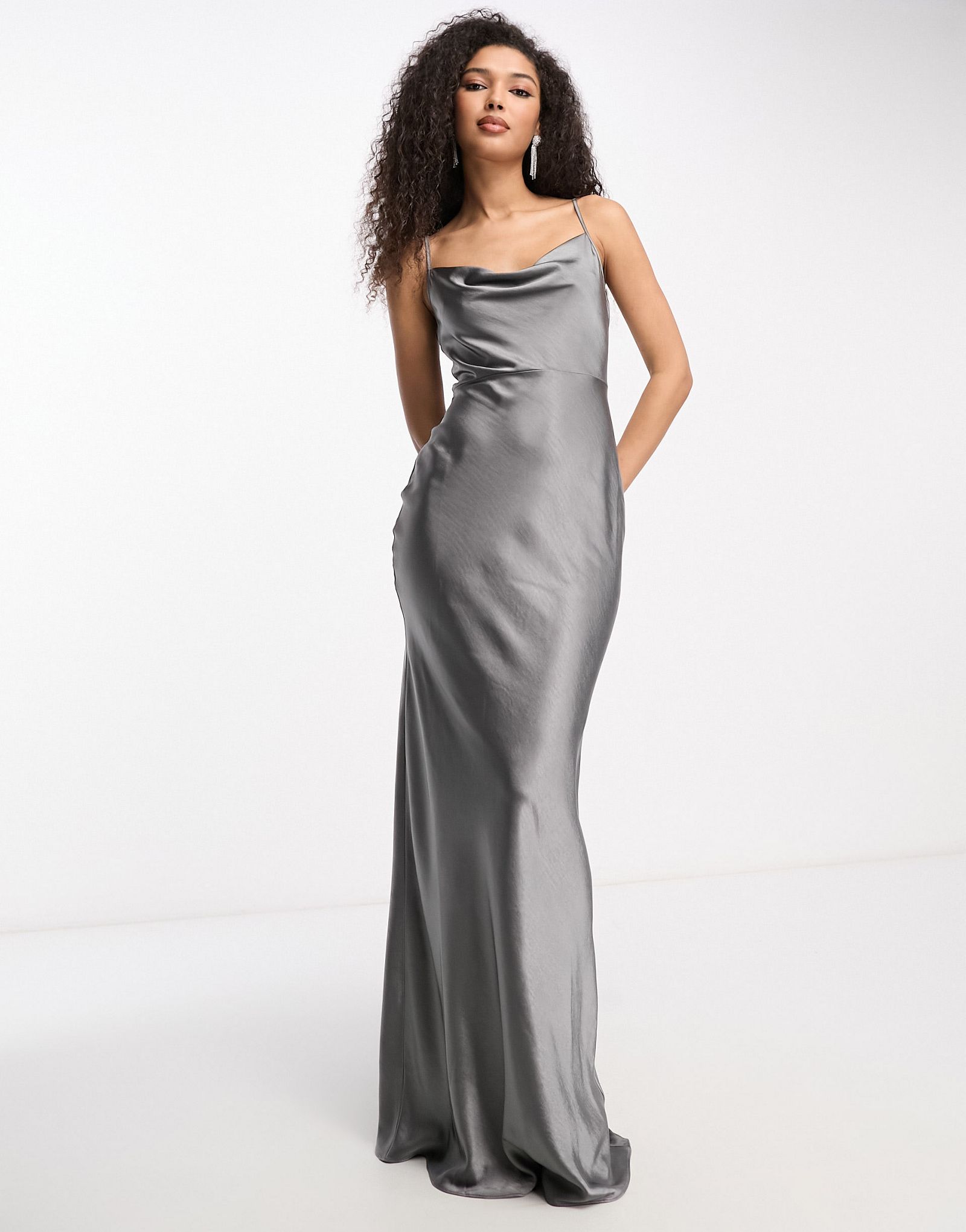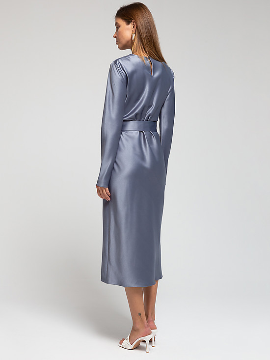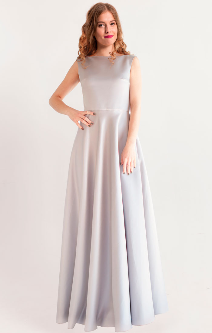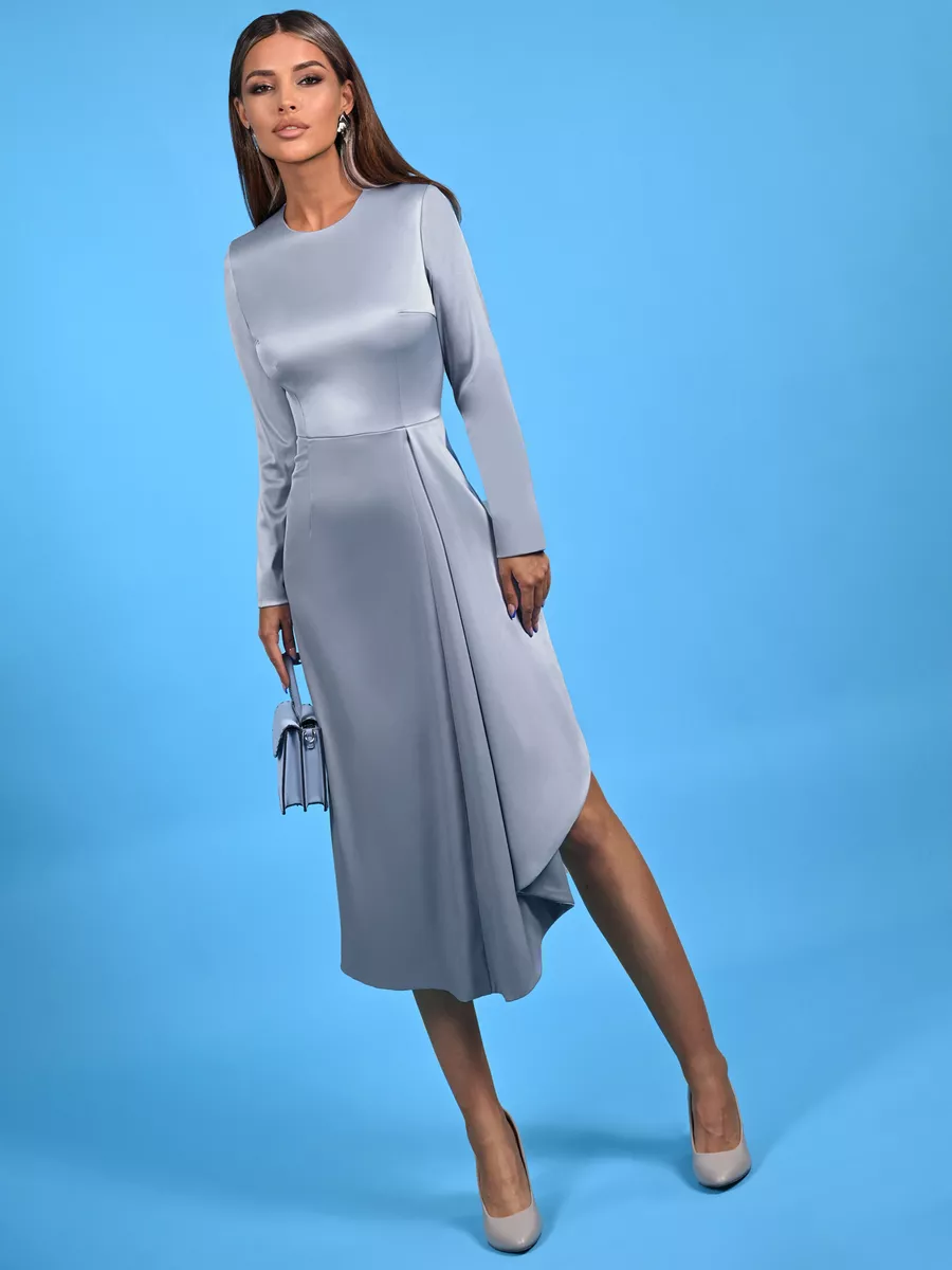 Серое атласное платье