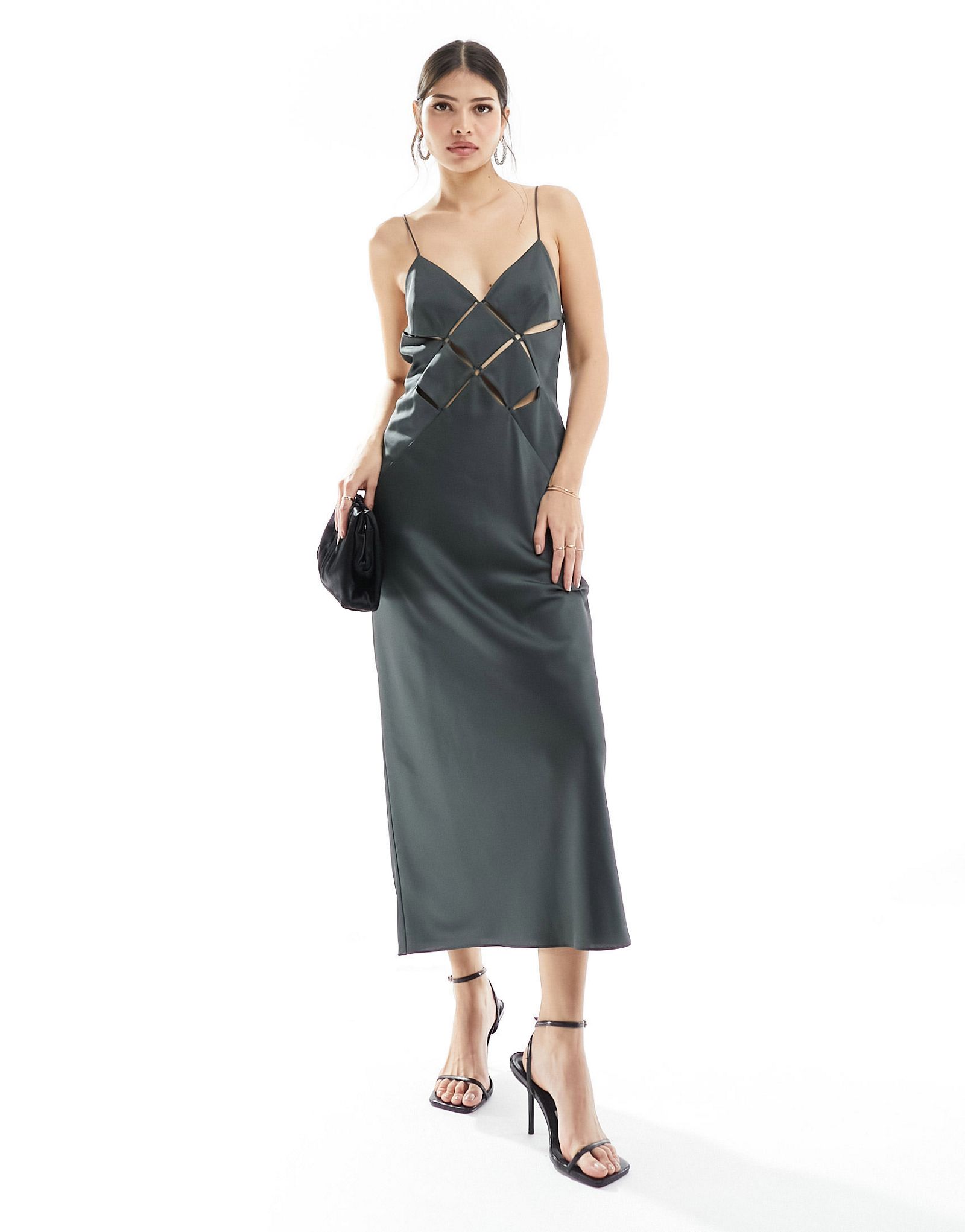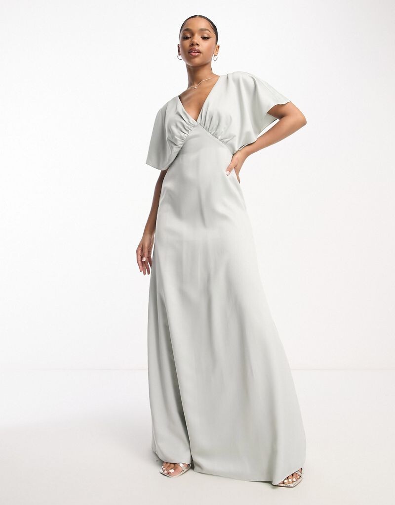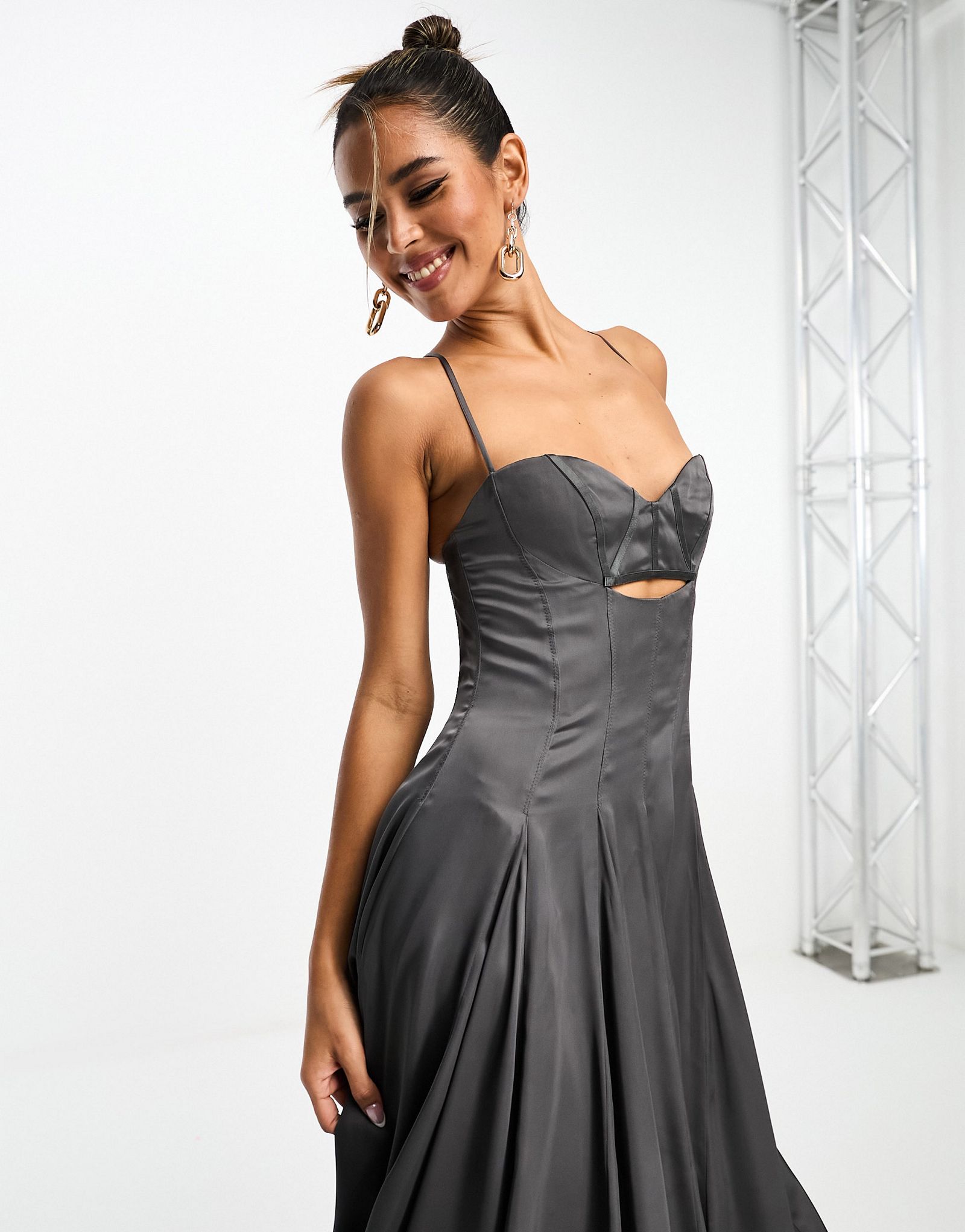Серое атласное платье