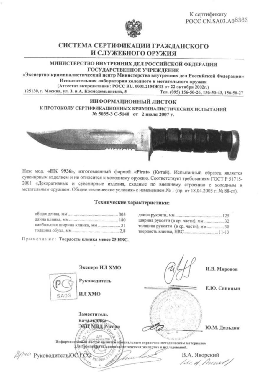 Сертификат что нож не является холодным 89 фото