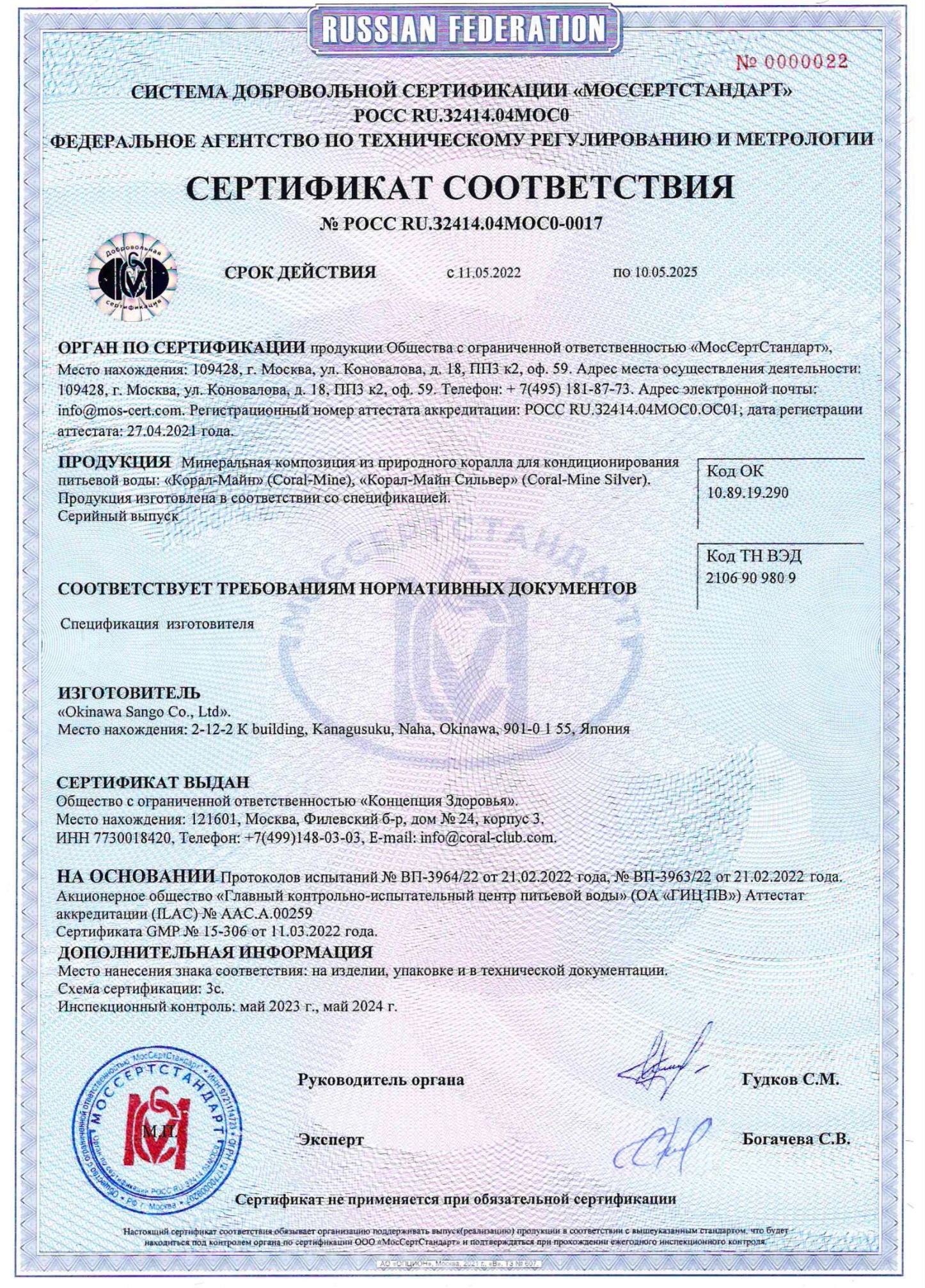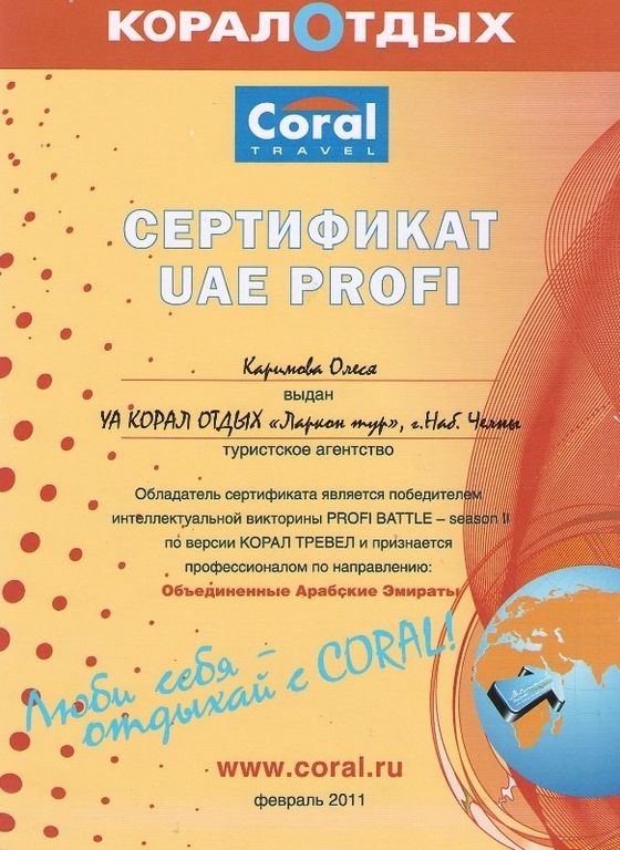 Сертификат корал