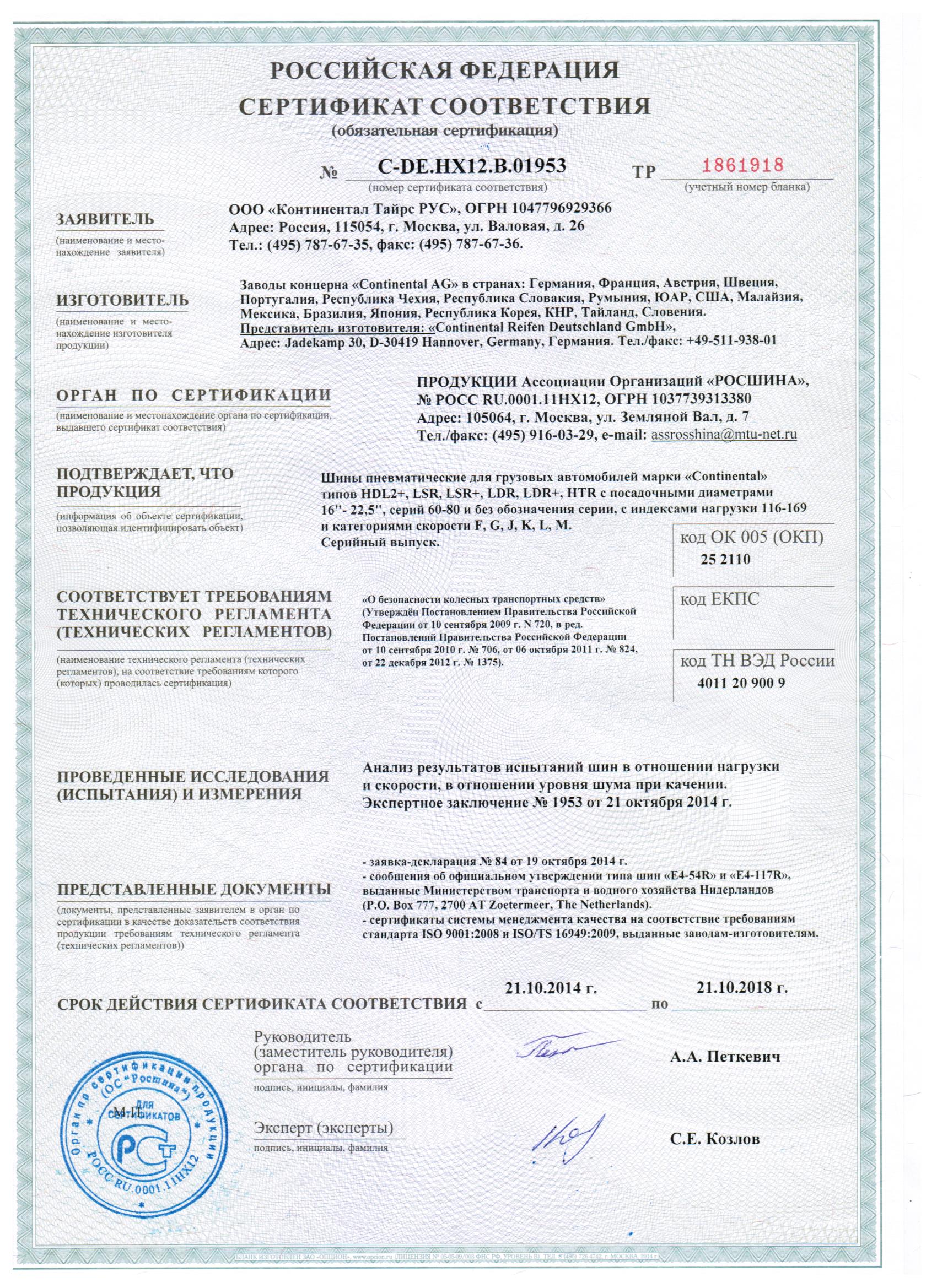 Сертификат на пленку