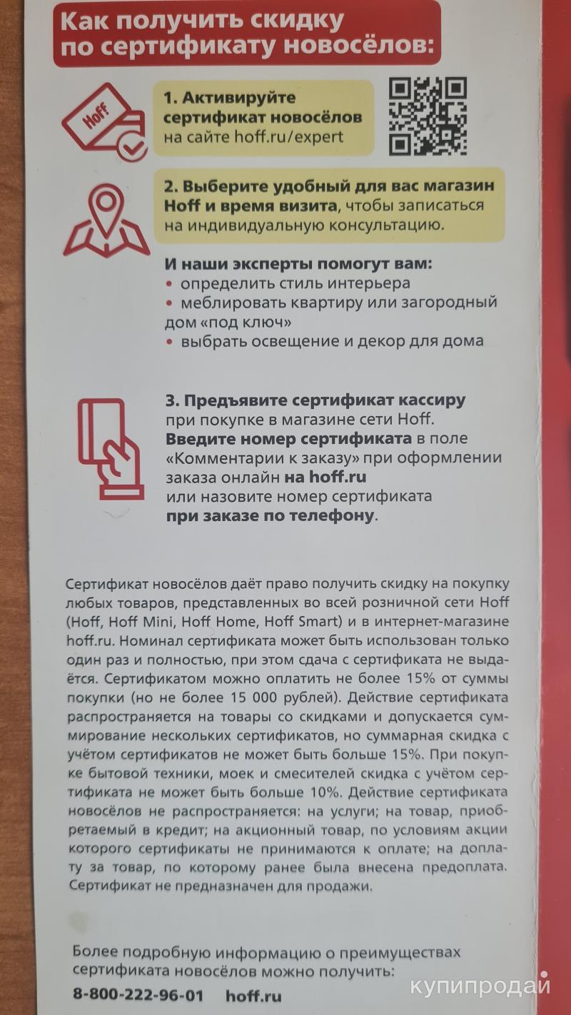 Сертификат новоселов хофф как получить 77 фото