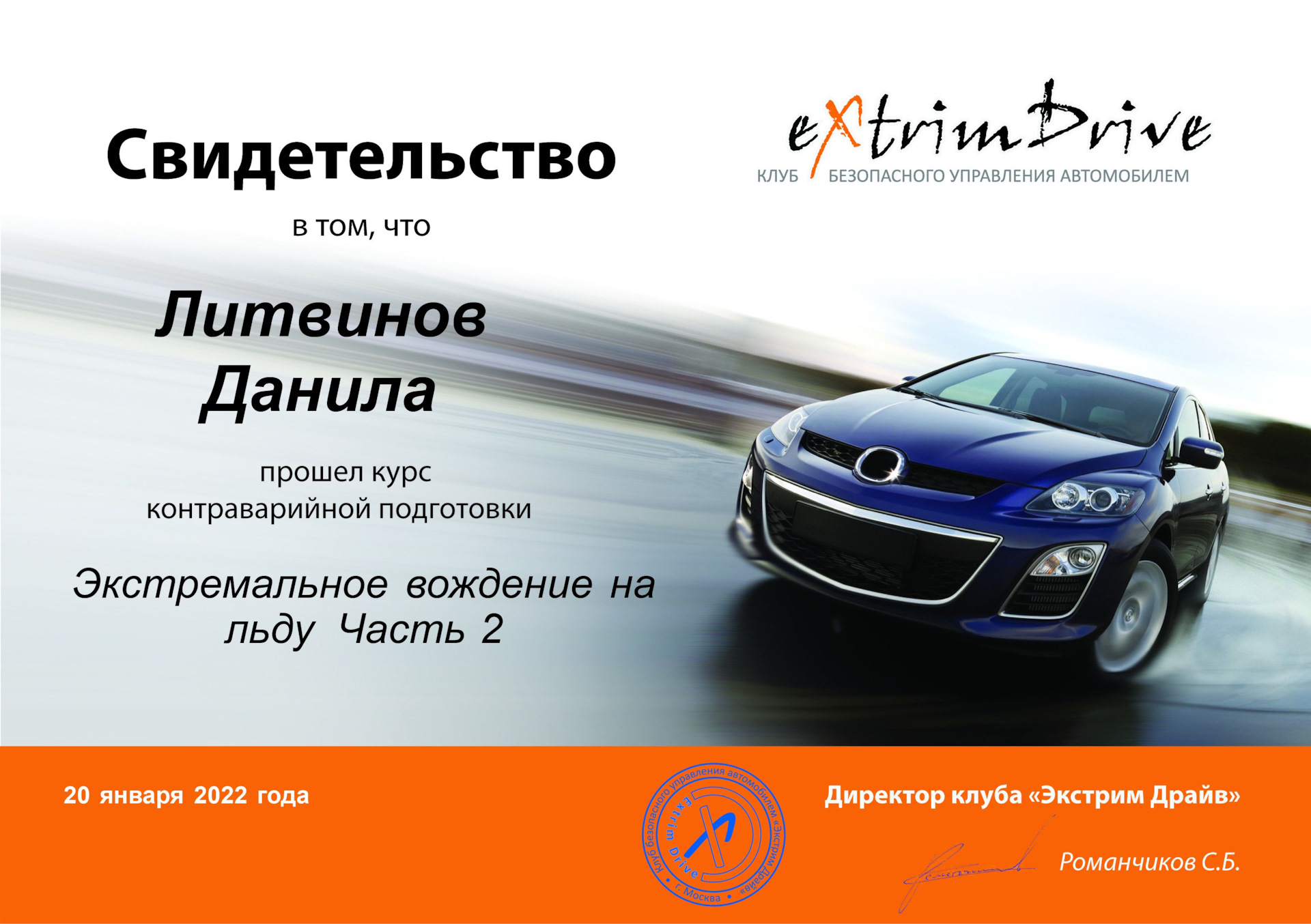 Сертификат о прохождении автошколы