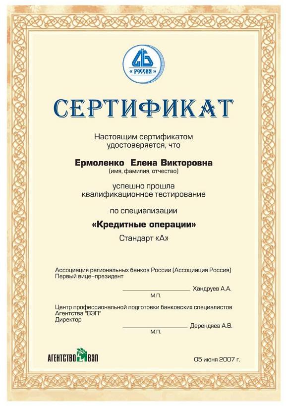 Сертификат примеры заполнения