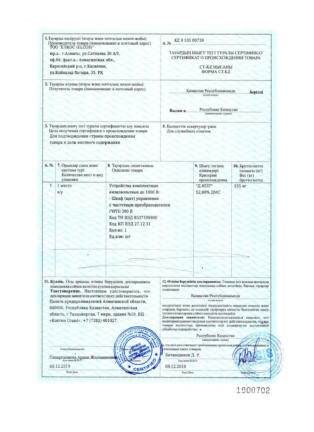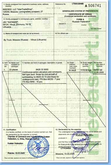 Сертификат происхождения решение