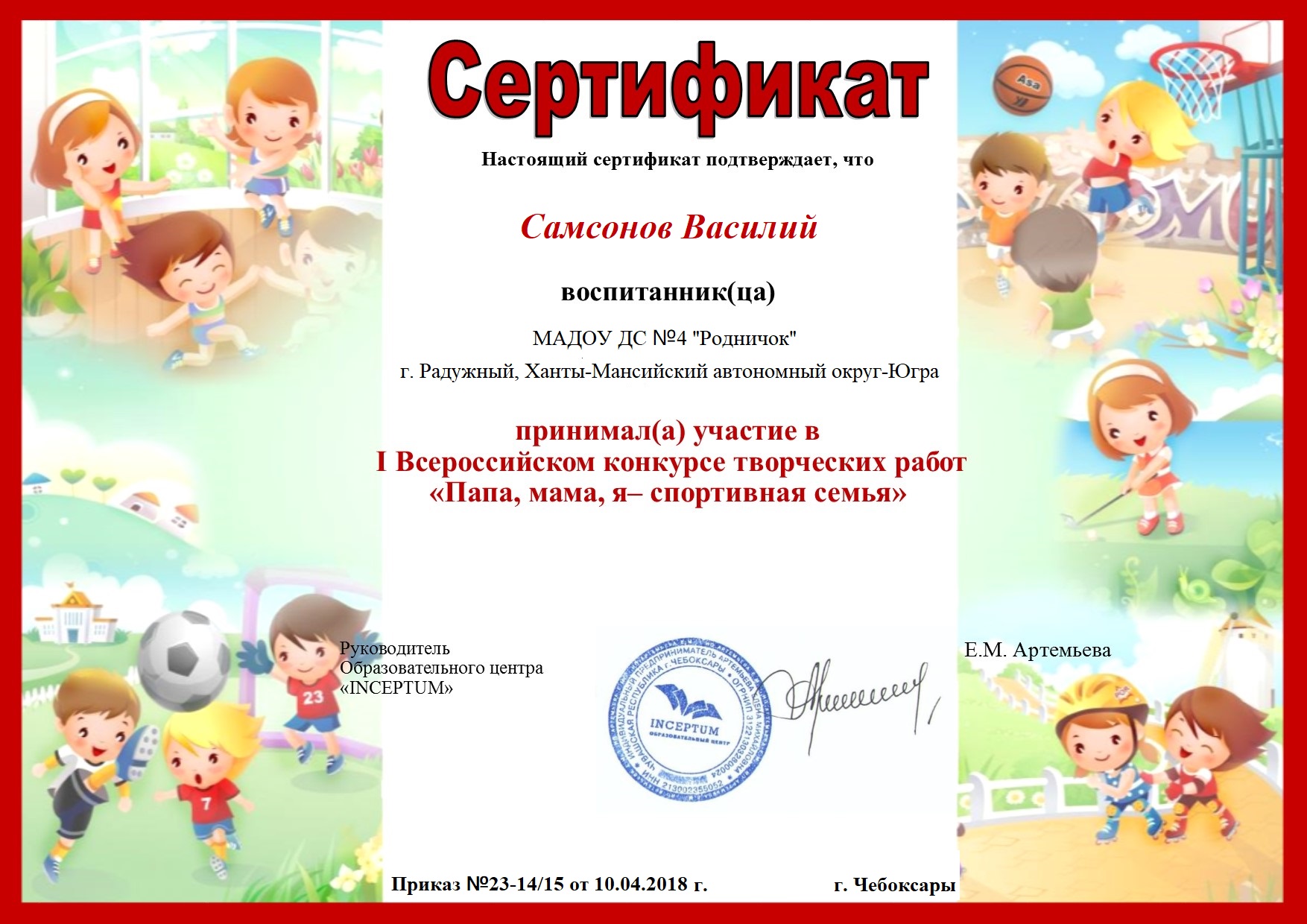 Сертификат работающего родителя