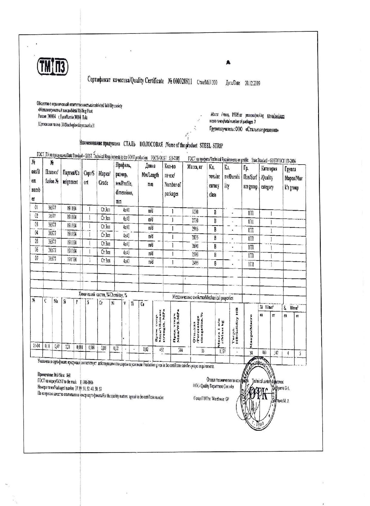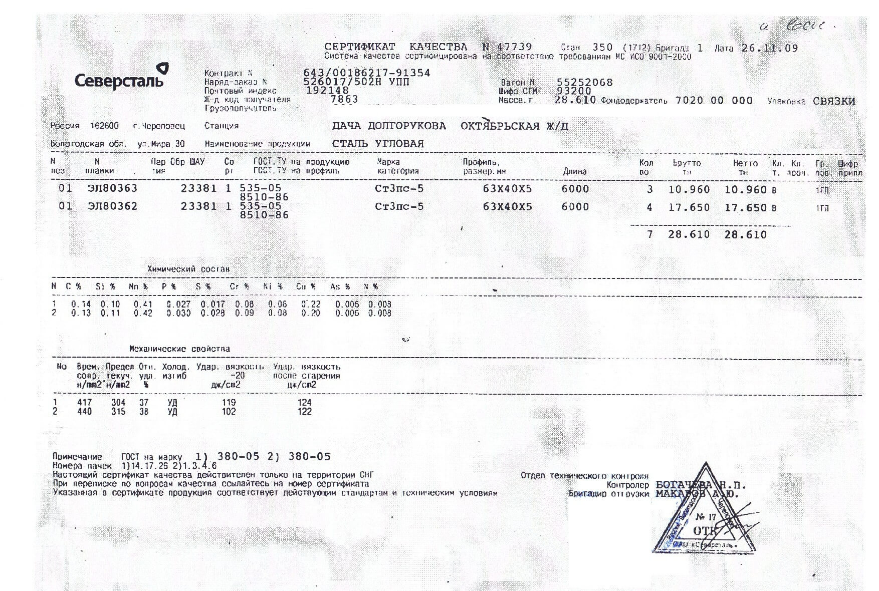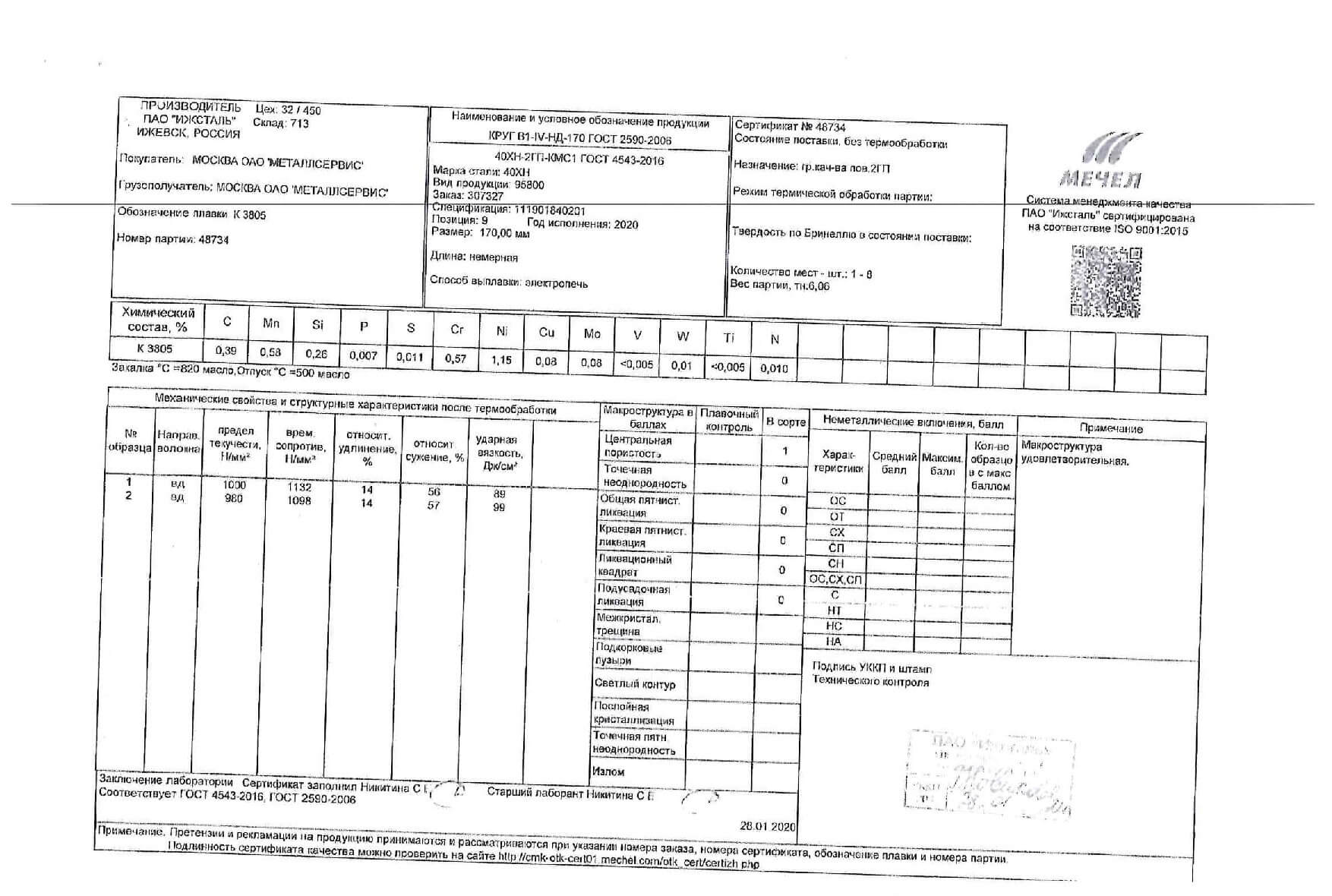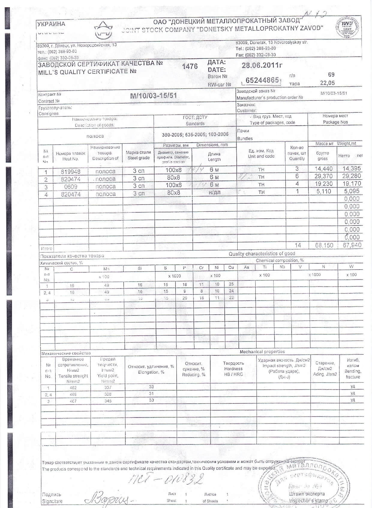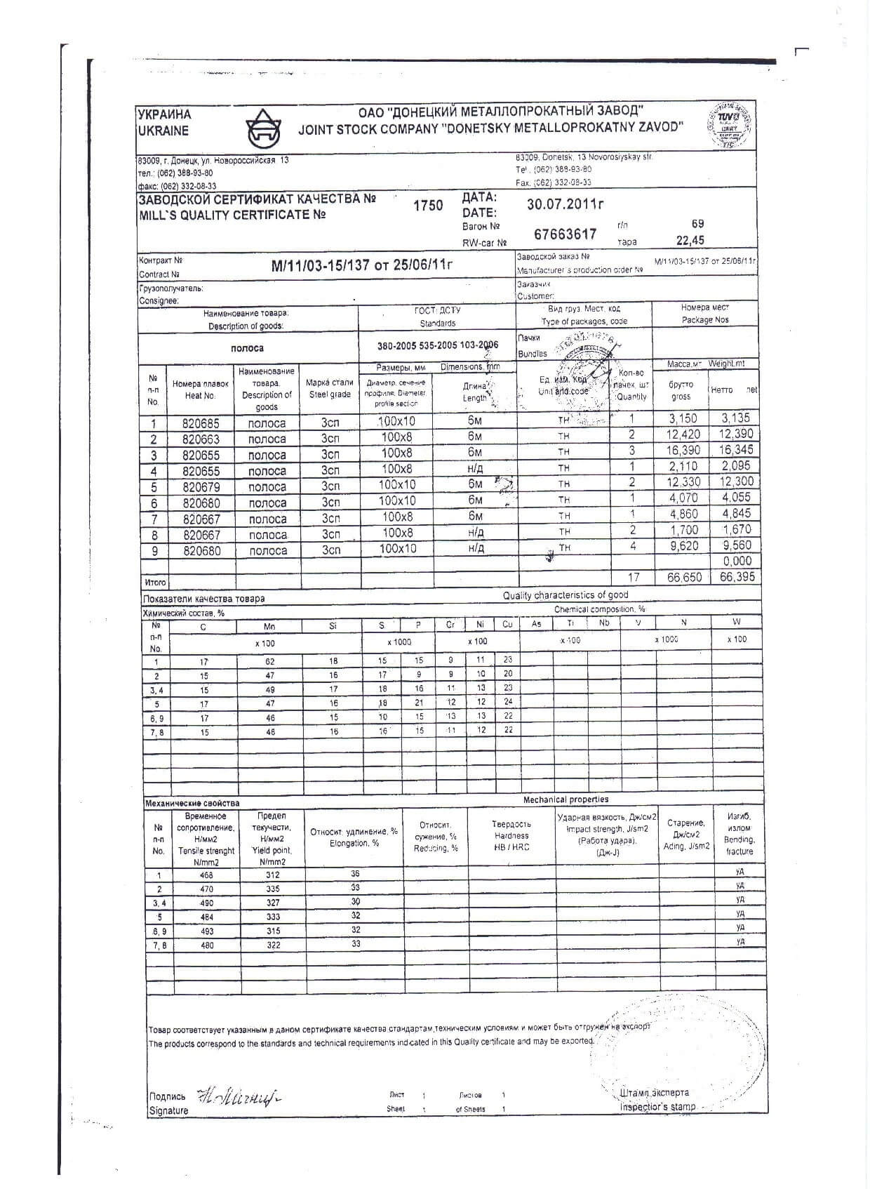 Сертификат сталь 100 100 4