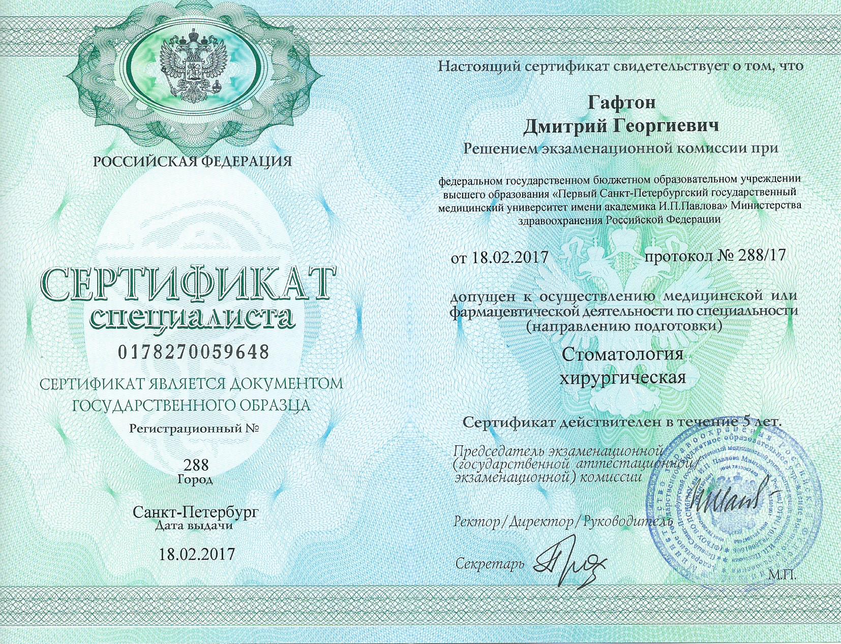 Сертификат старшая медсестра