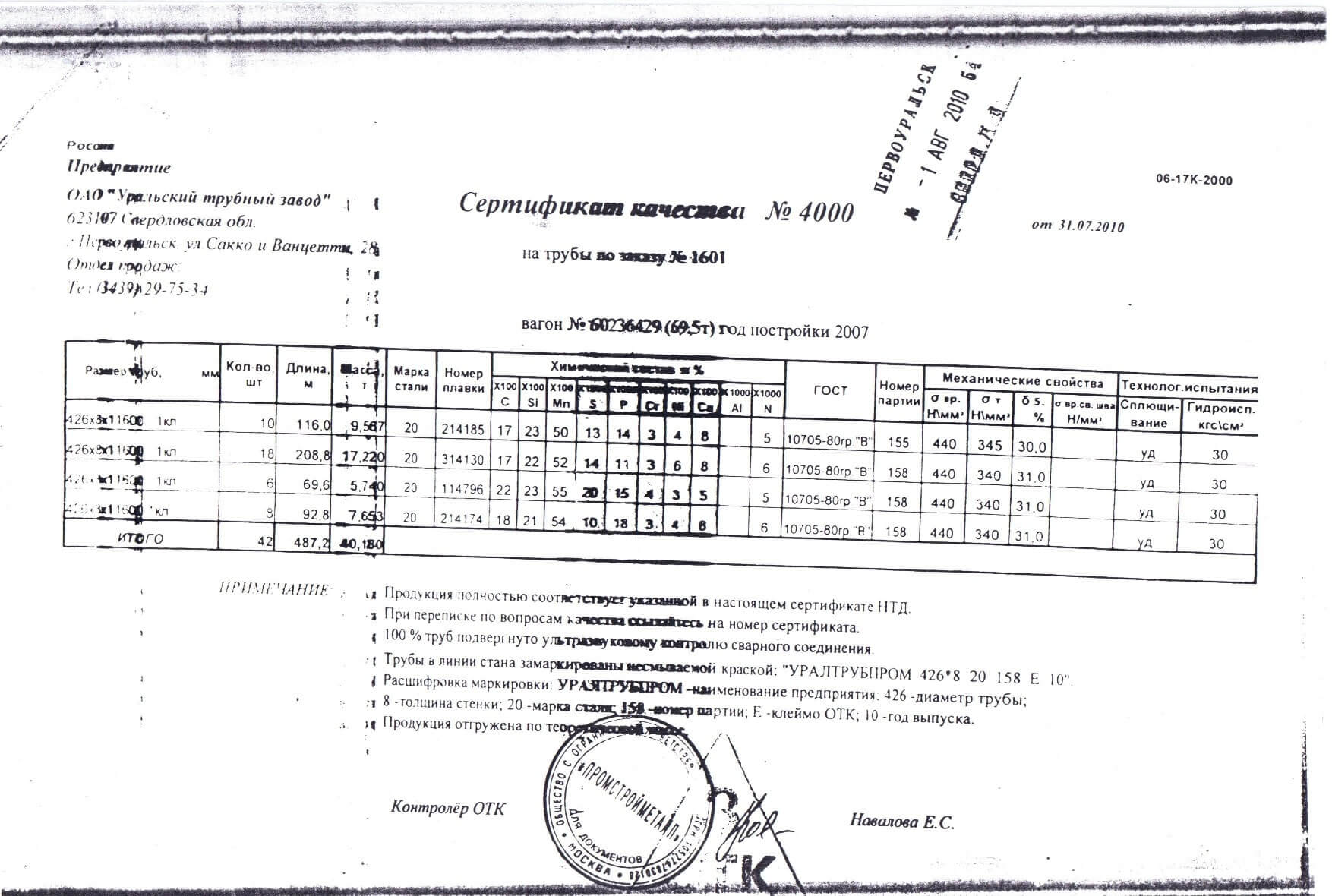Сертификат труба 8734 75 120 фото
