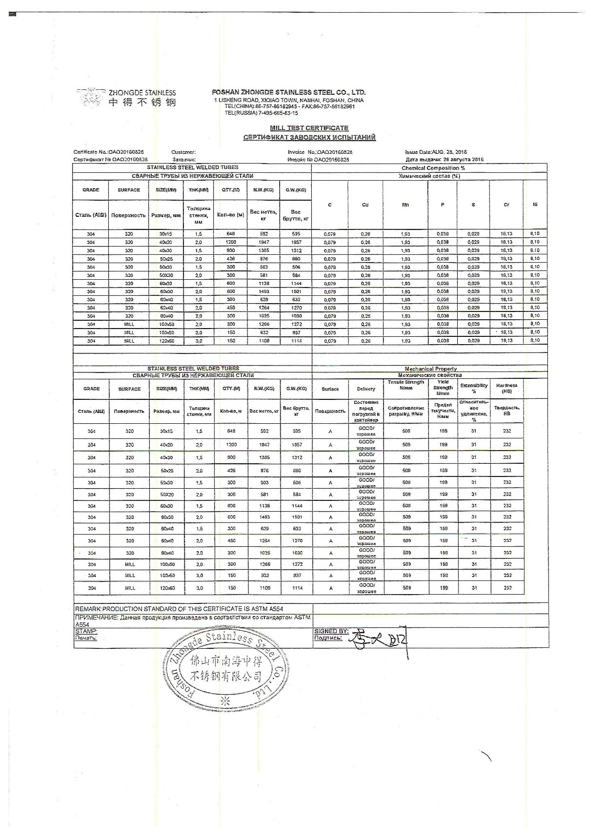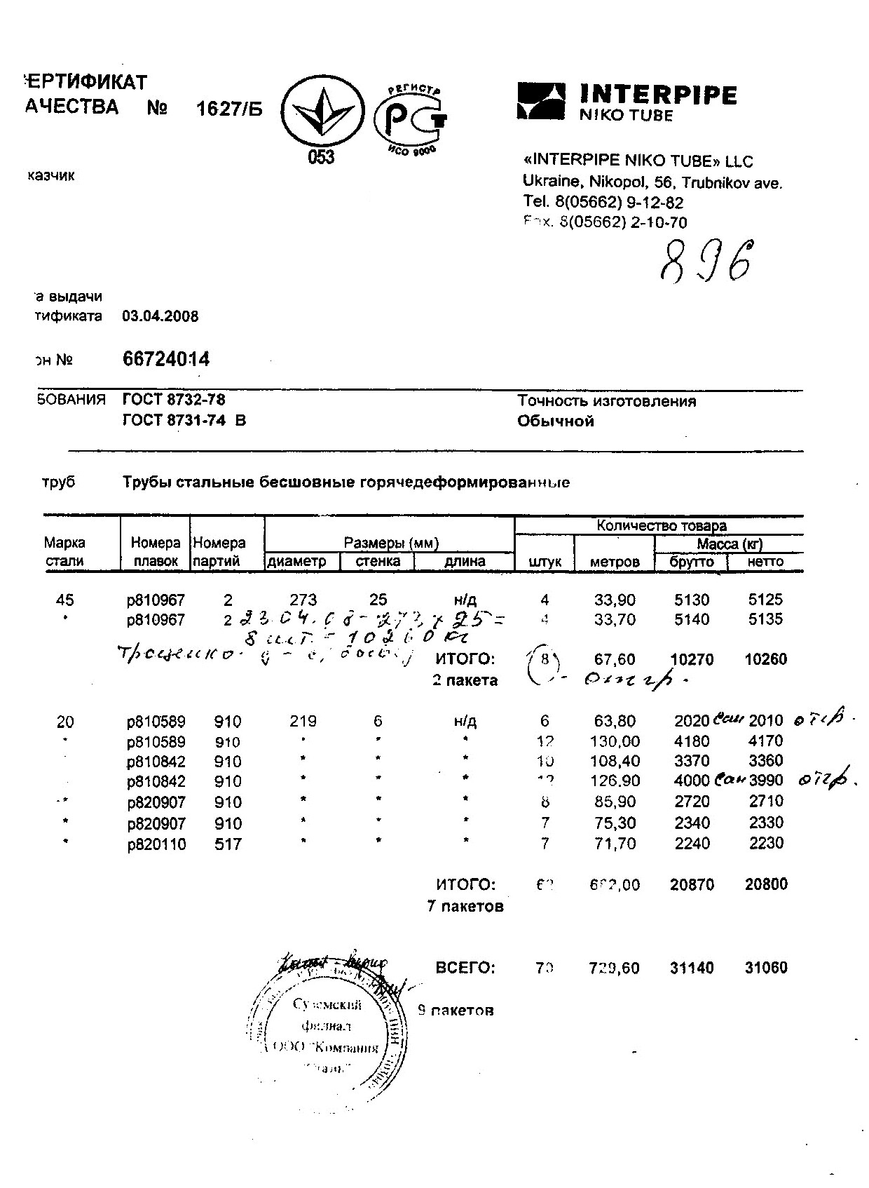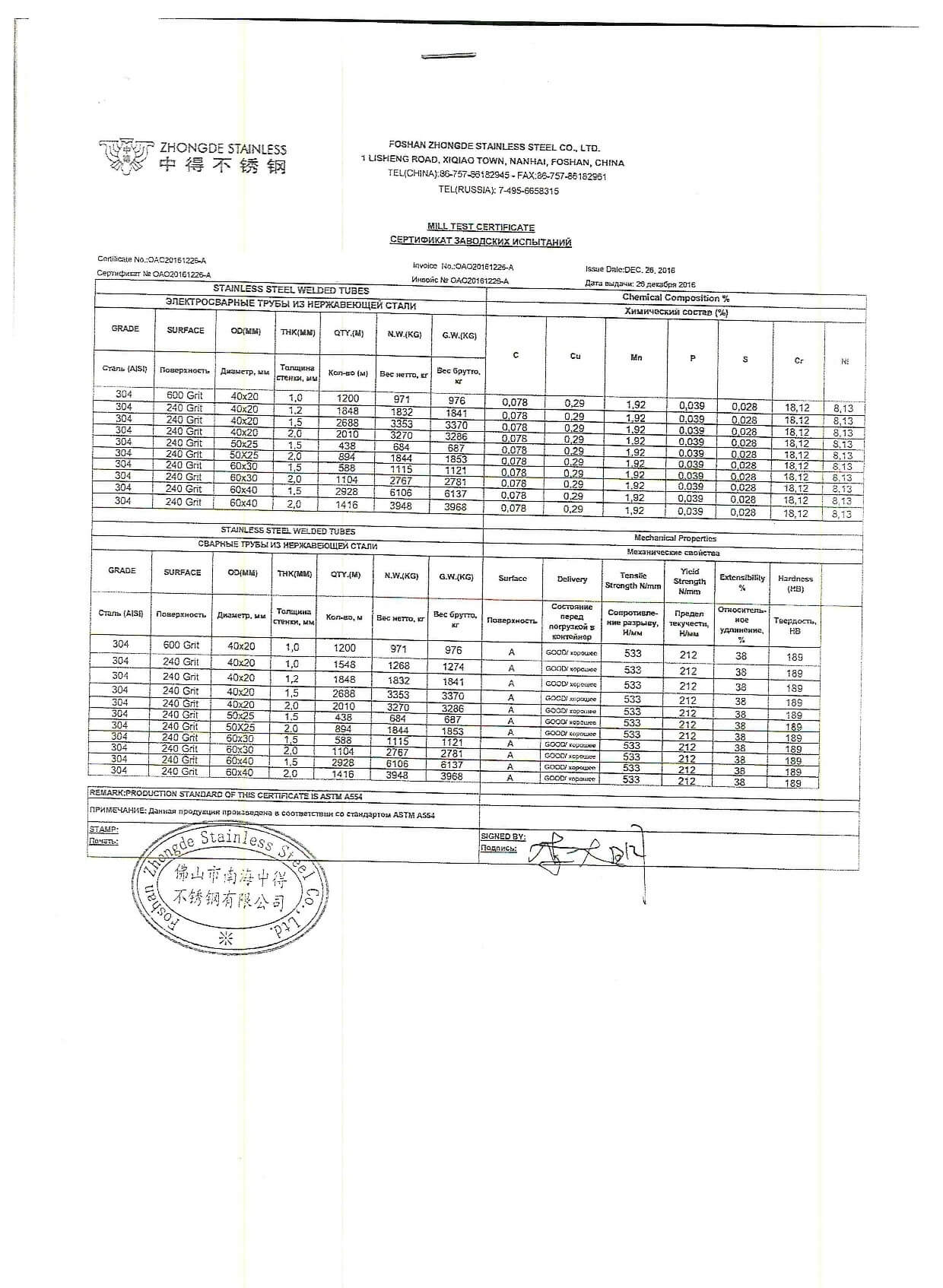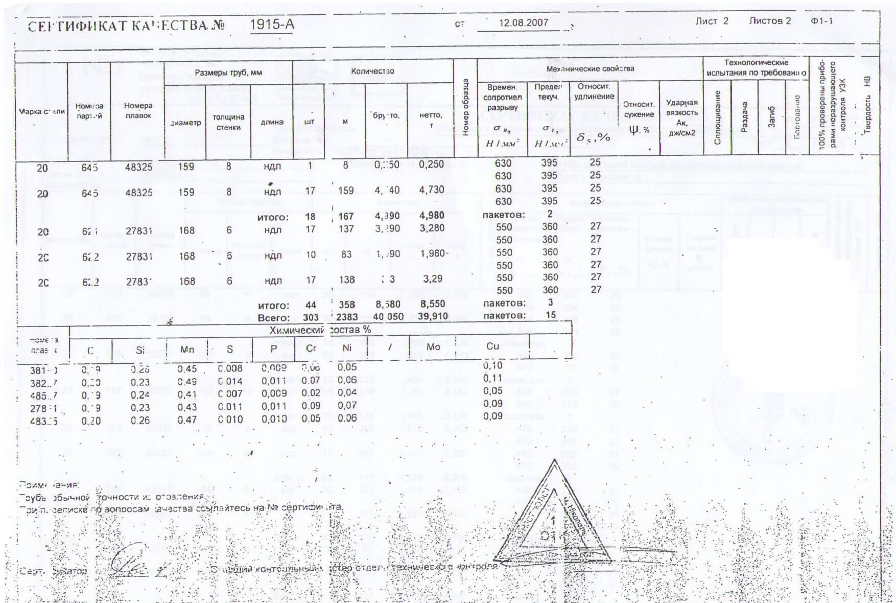 Сертификат труба 8734 75