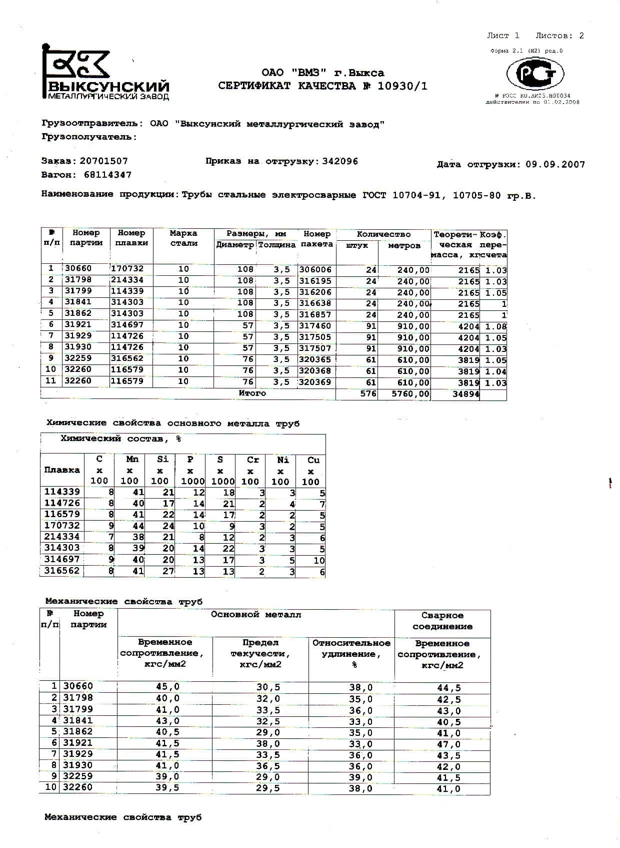 Сертификат труба 89 119 фото