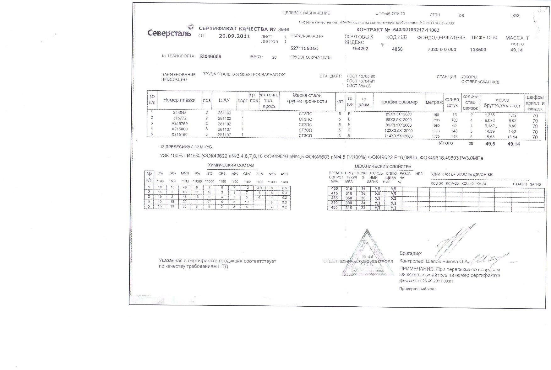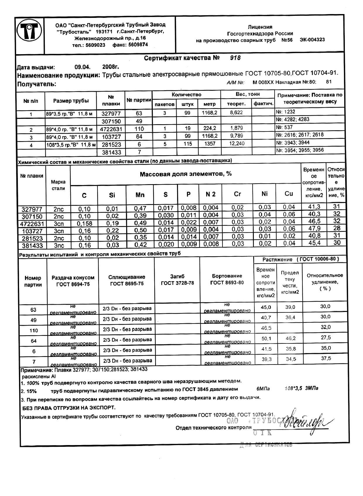 Сертификат труба 89