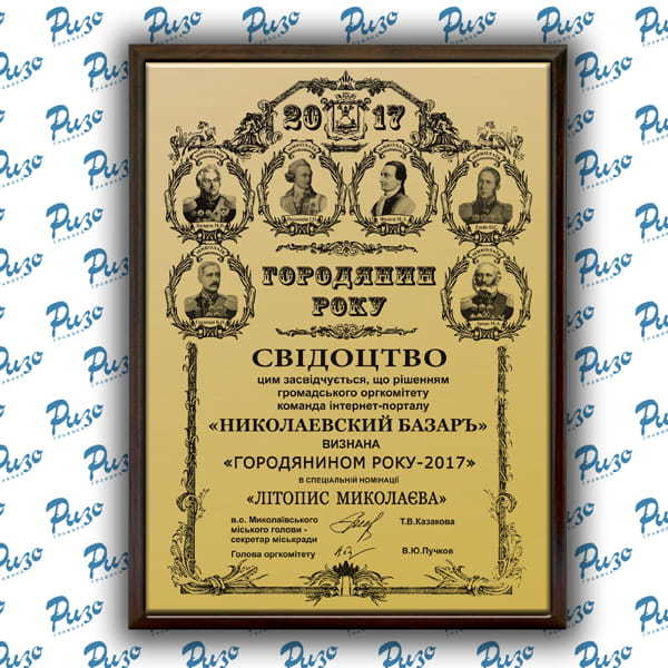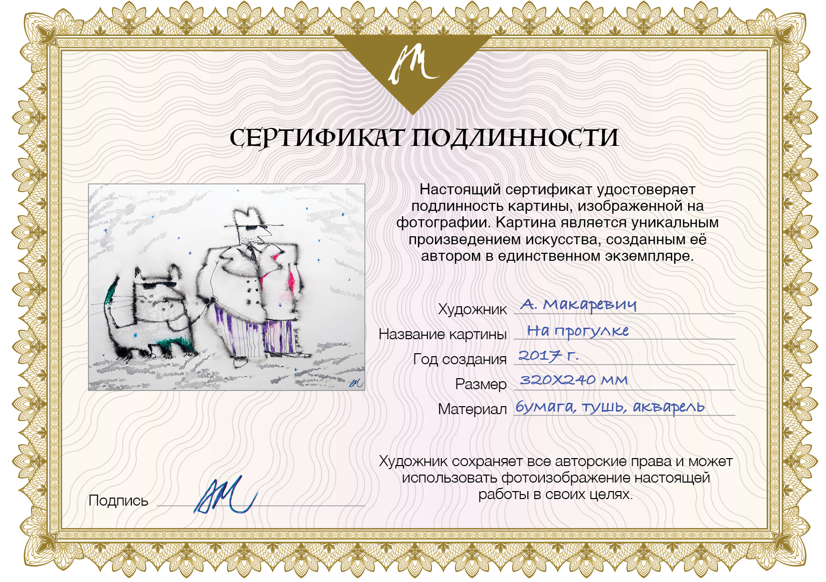 Сертификат в галерею