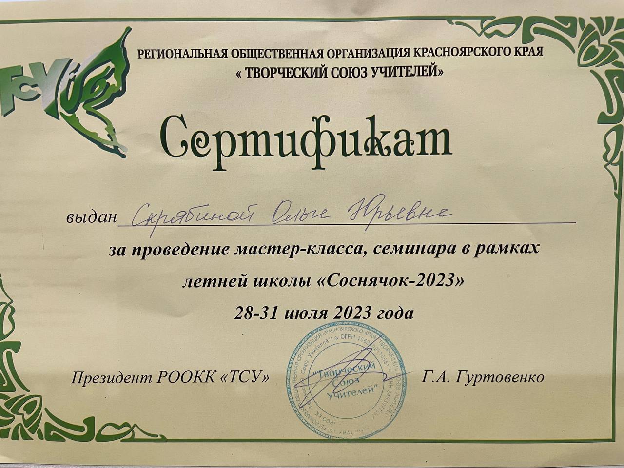 Сертификаты Учителю Фото