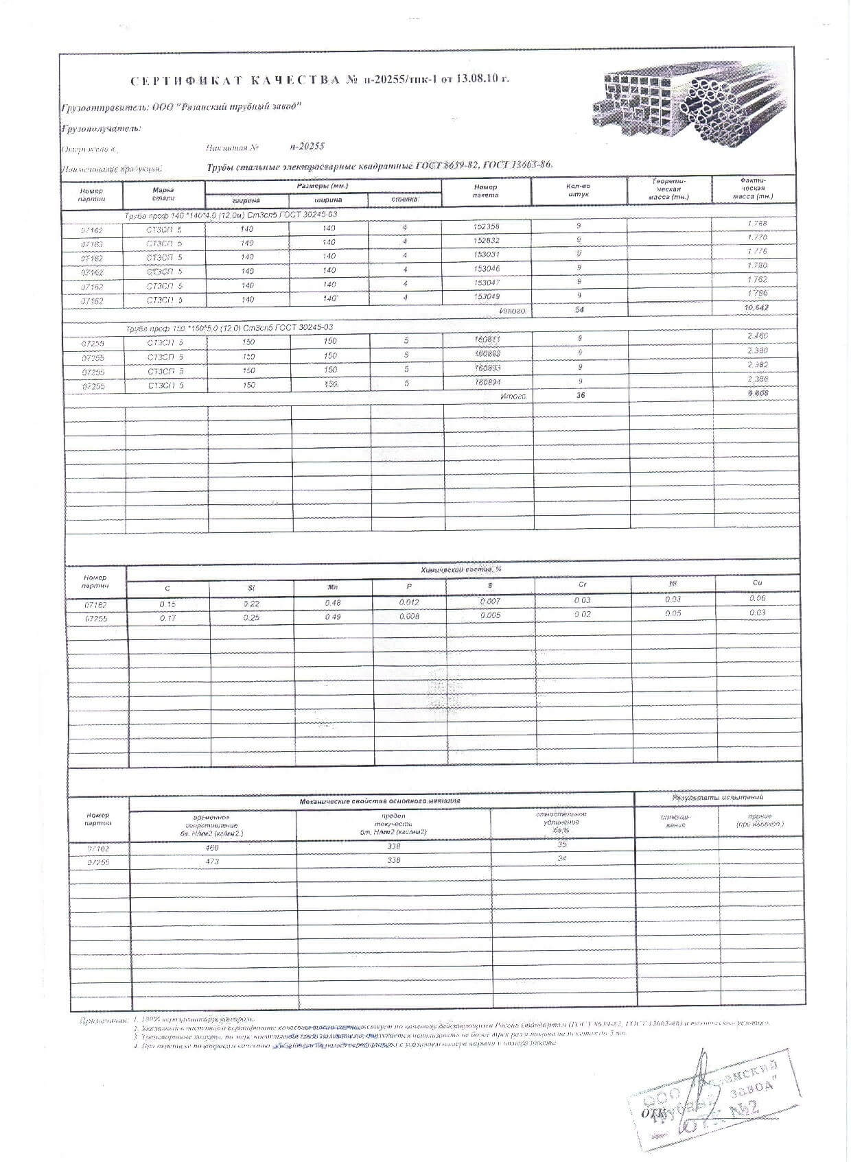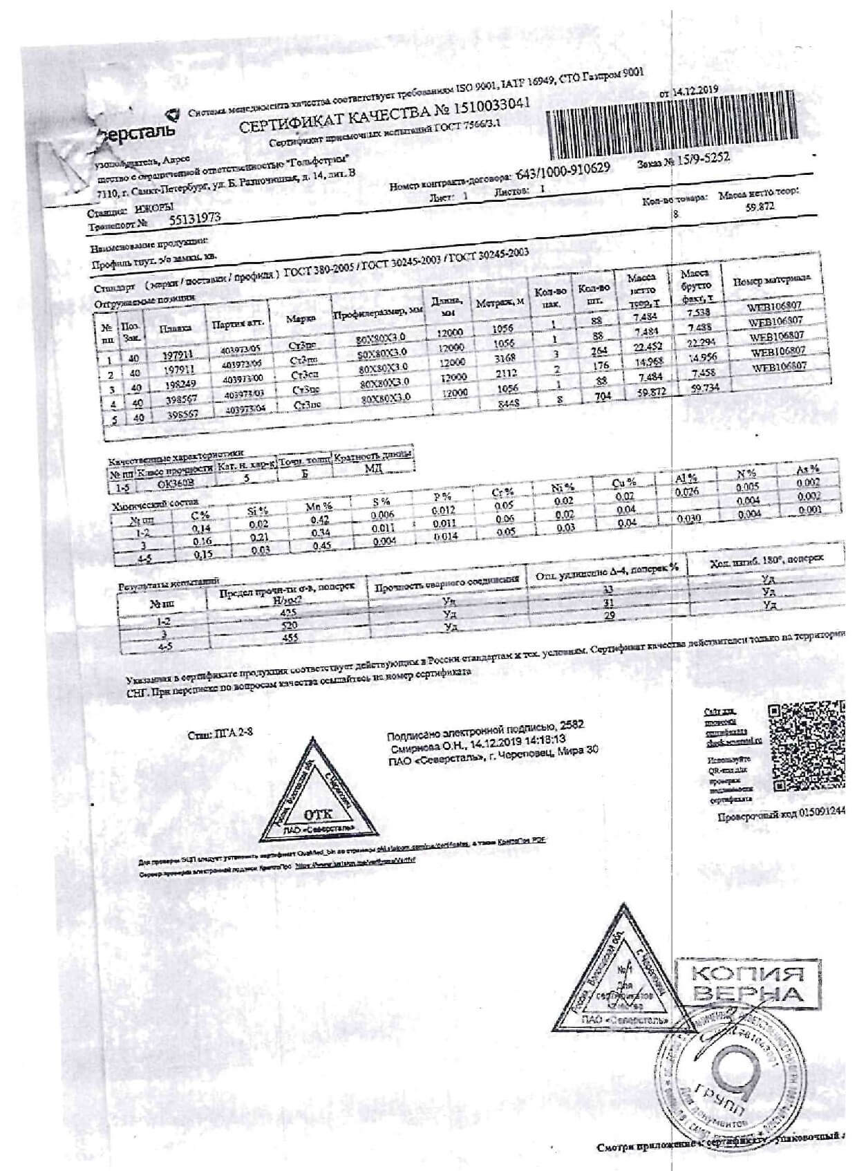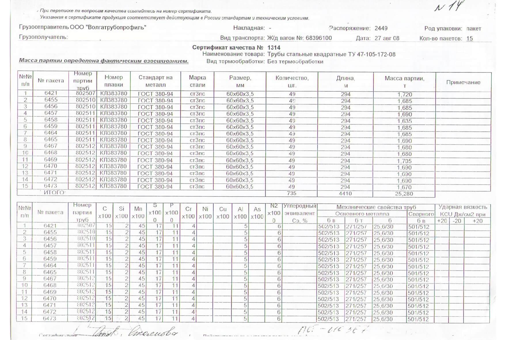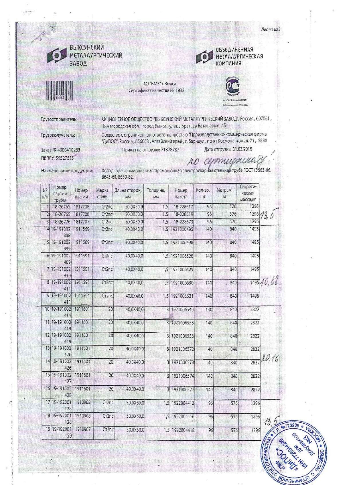 Сертификаты на квадратную трубу