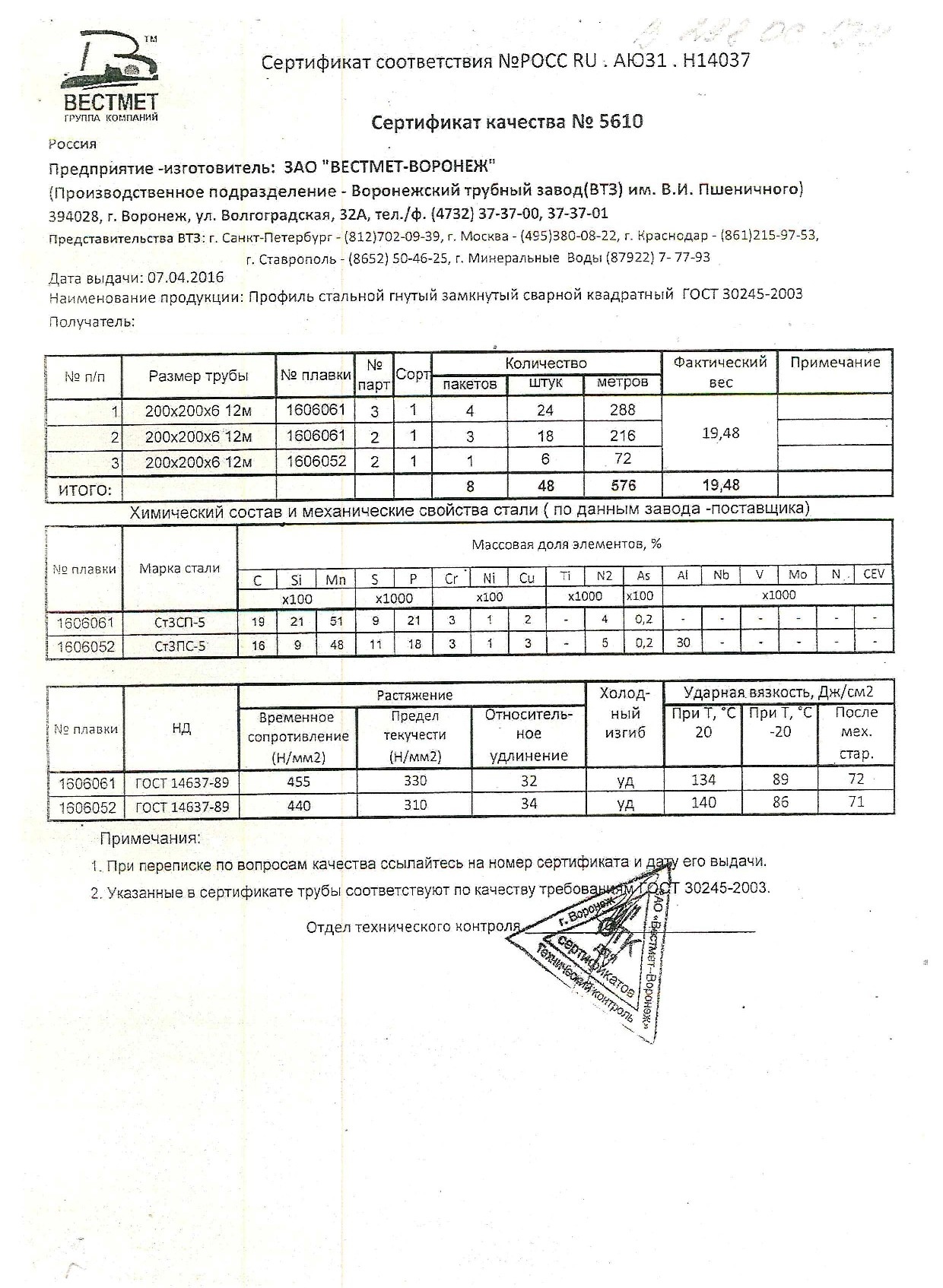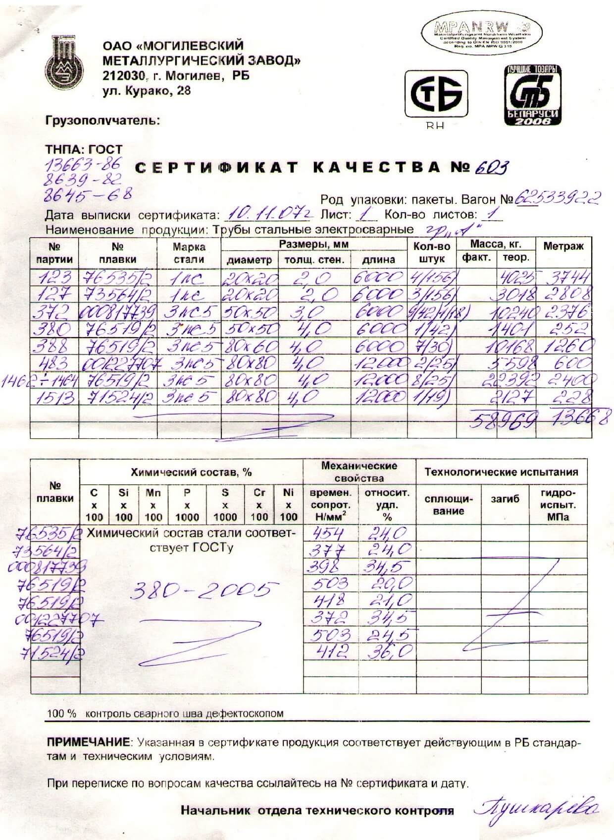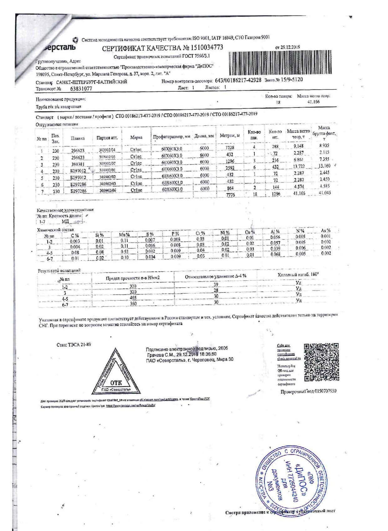 Сертификаты на квадратную трубу