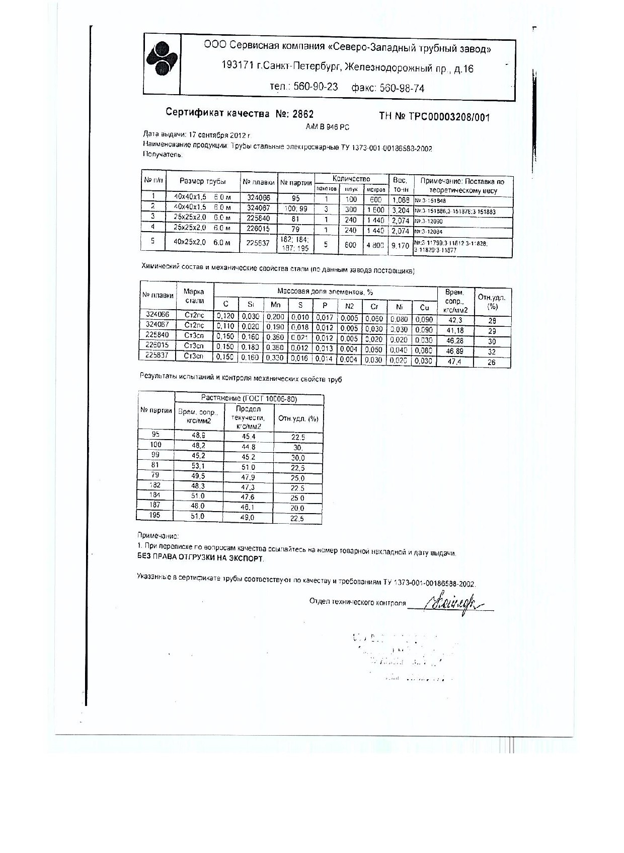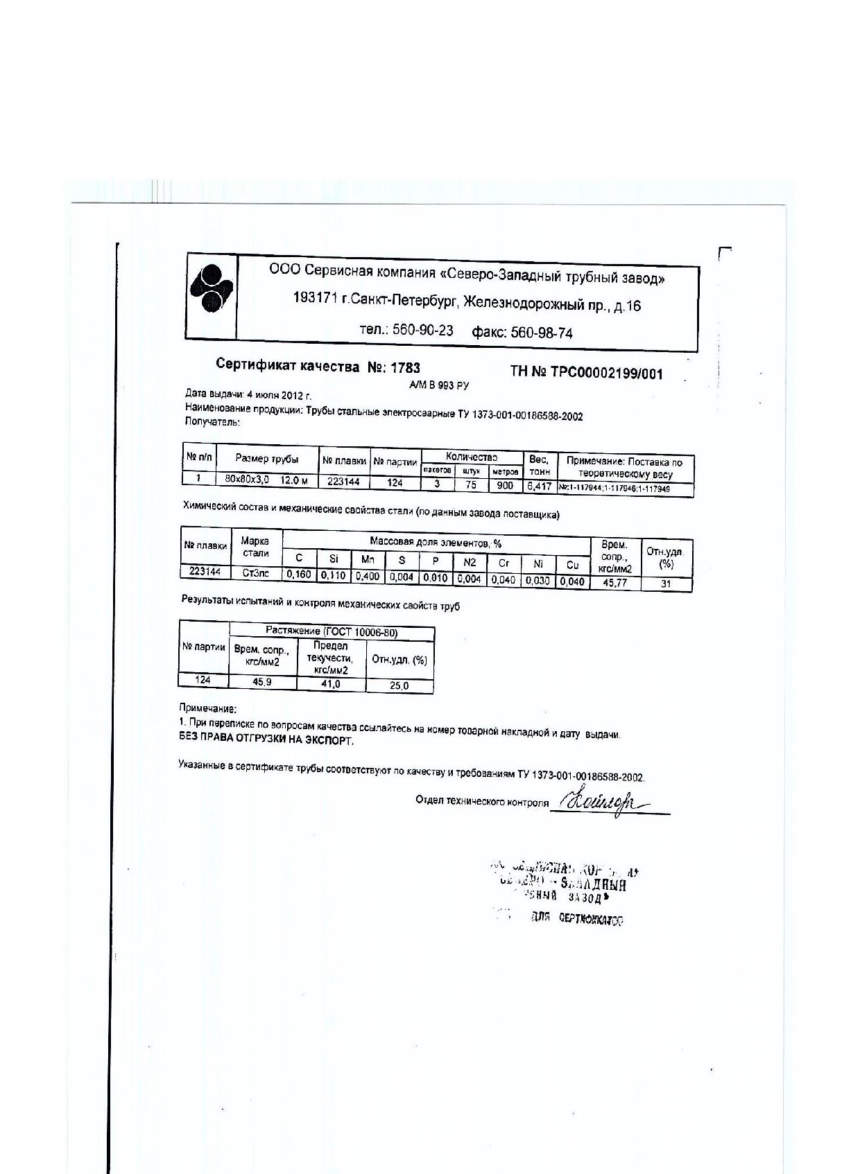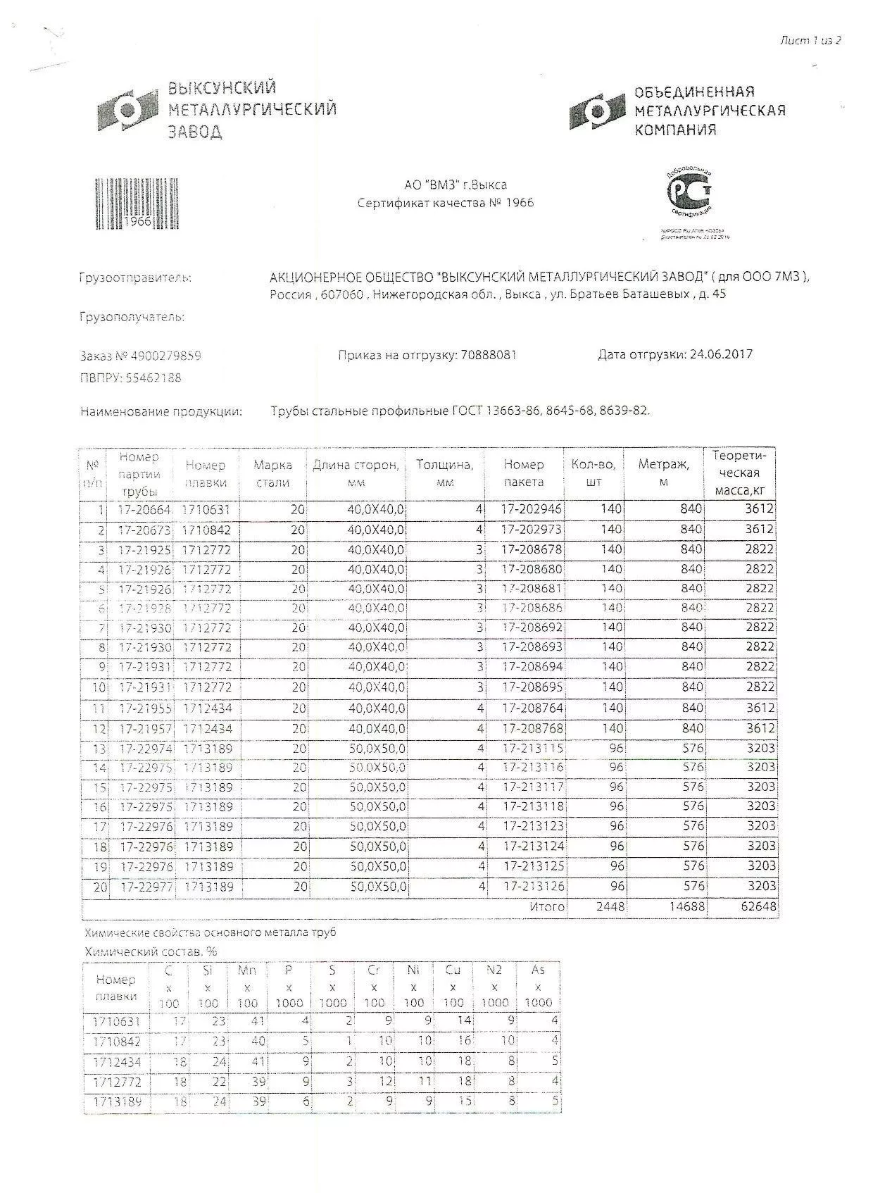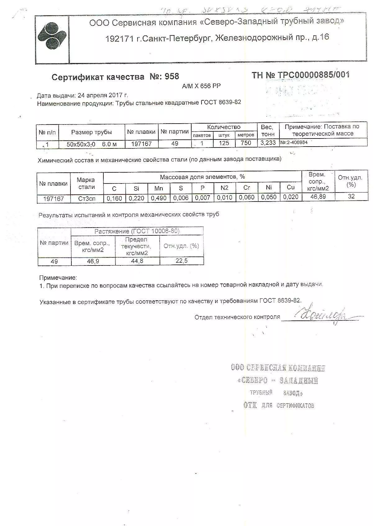 Сертификаты на квадратную трубу