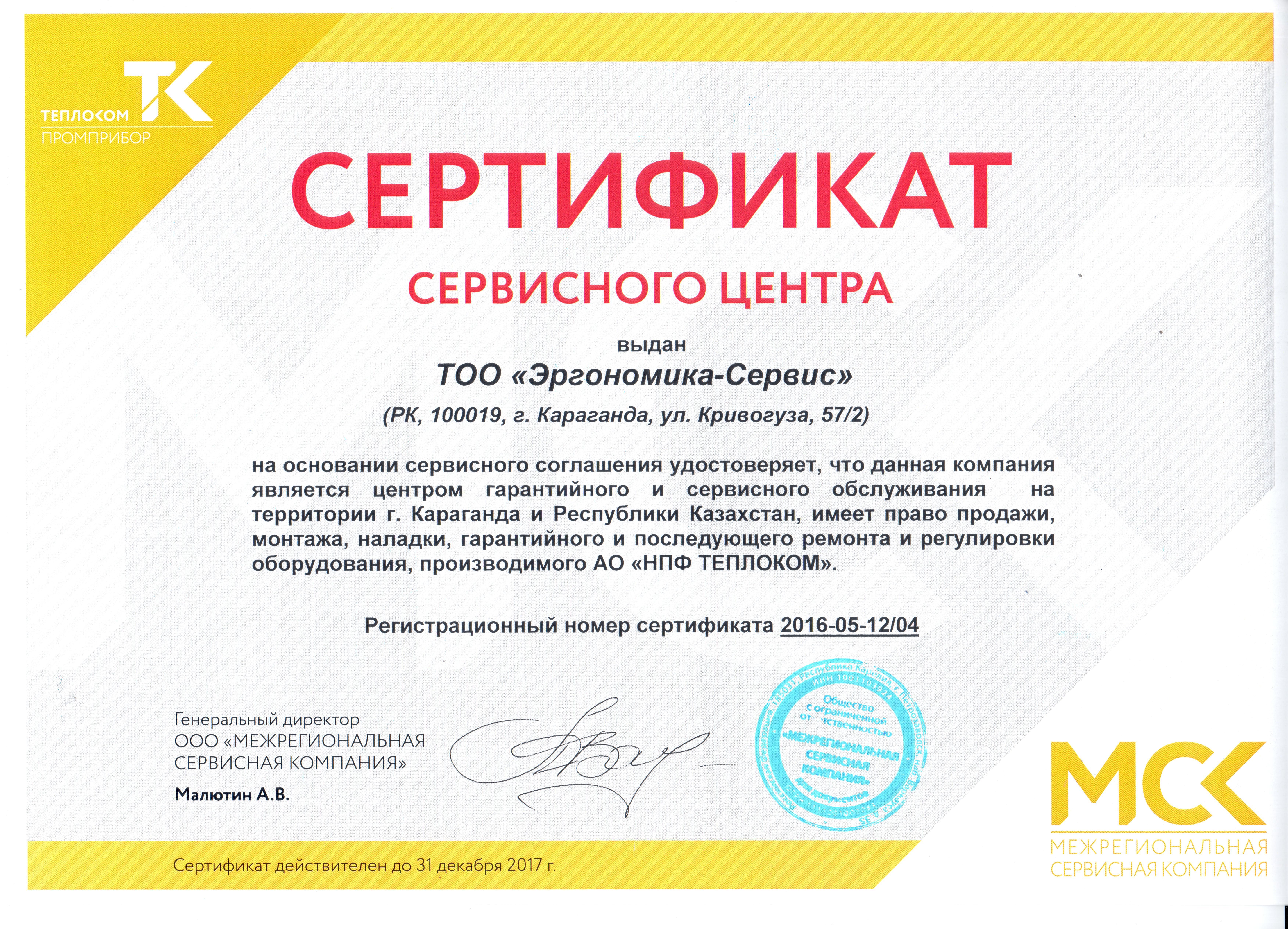 Сертификаты сервисных центров