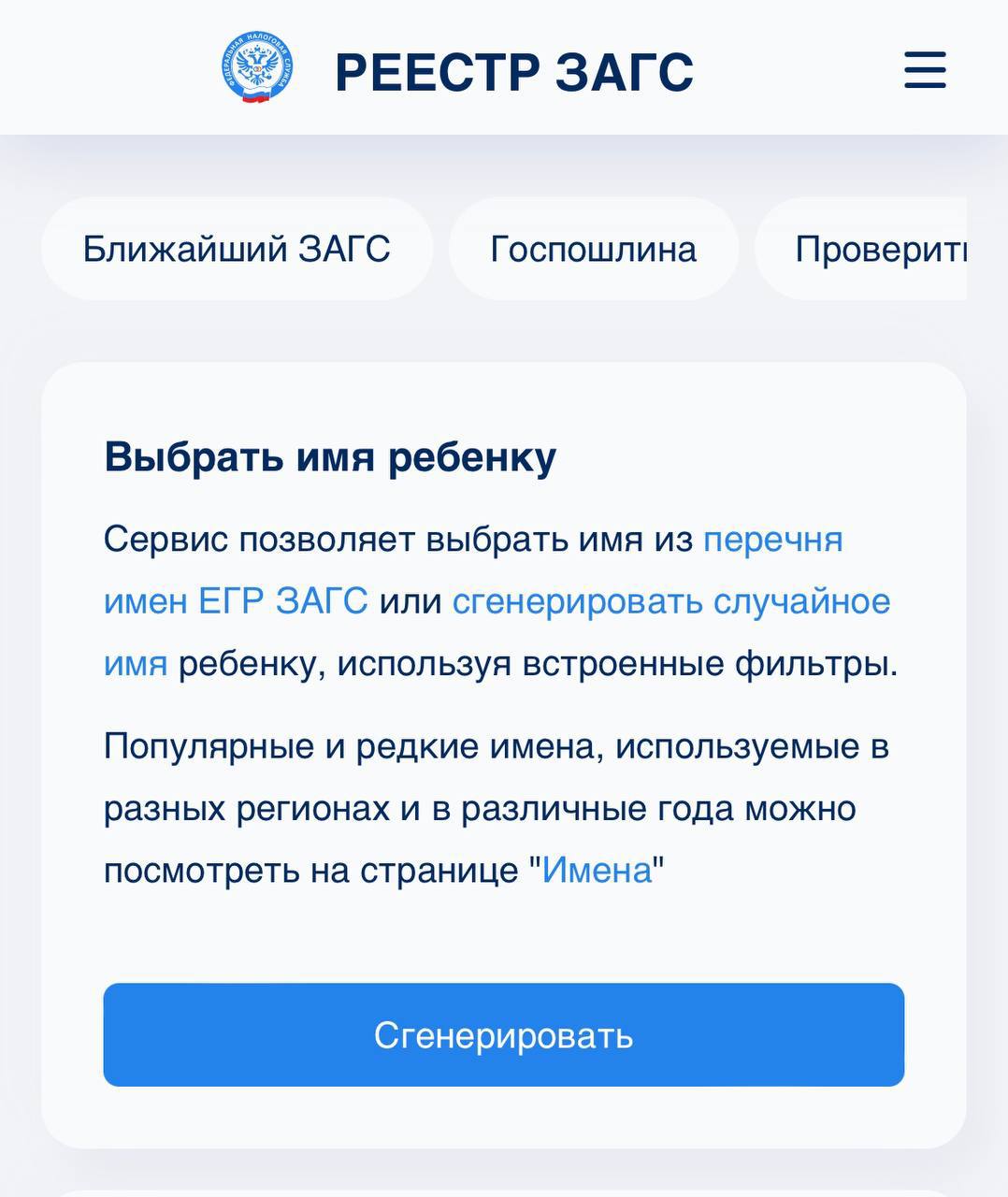 Сервис подбора имени ребенка