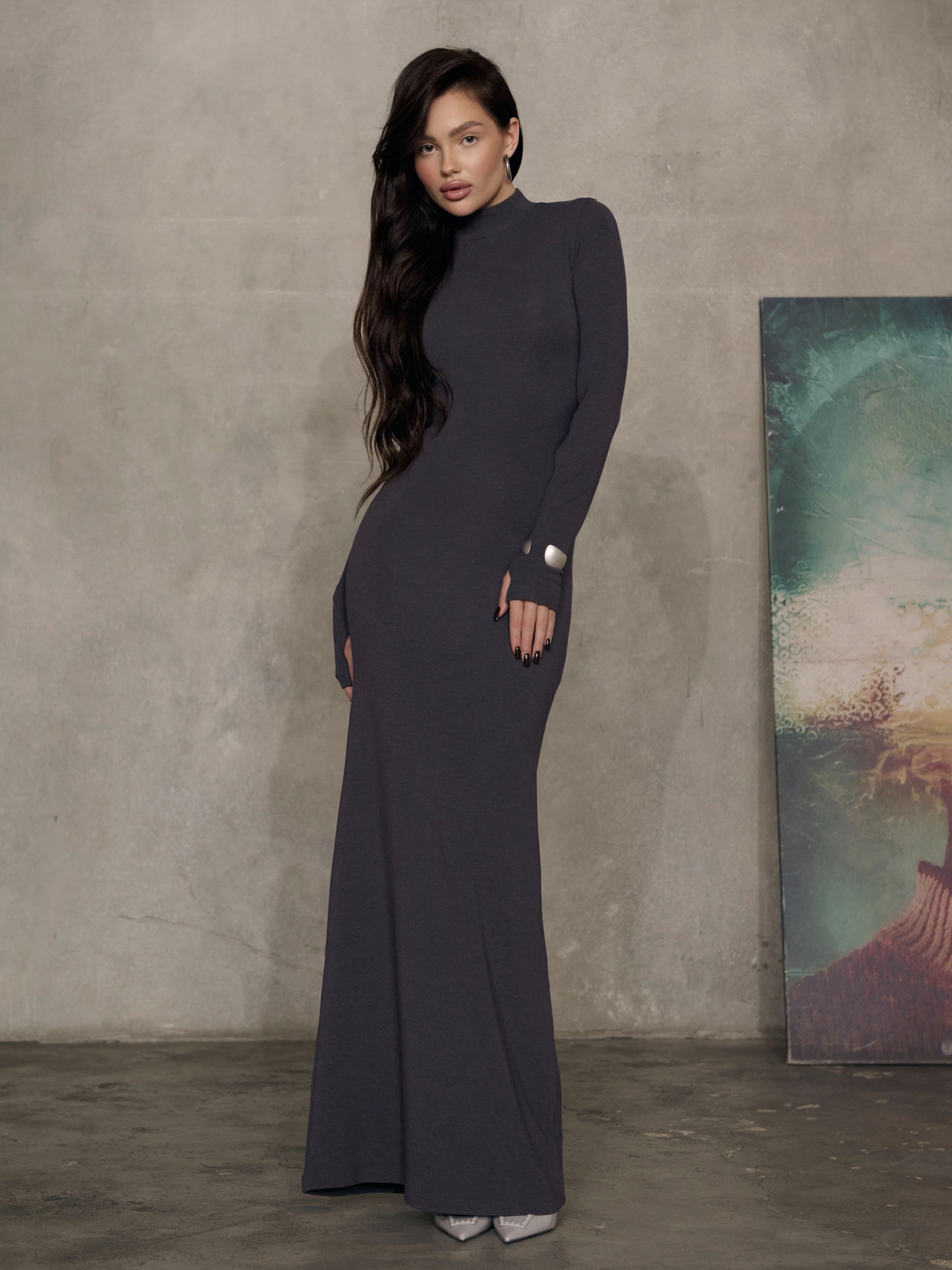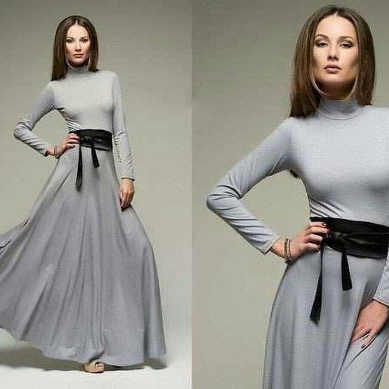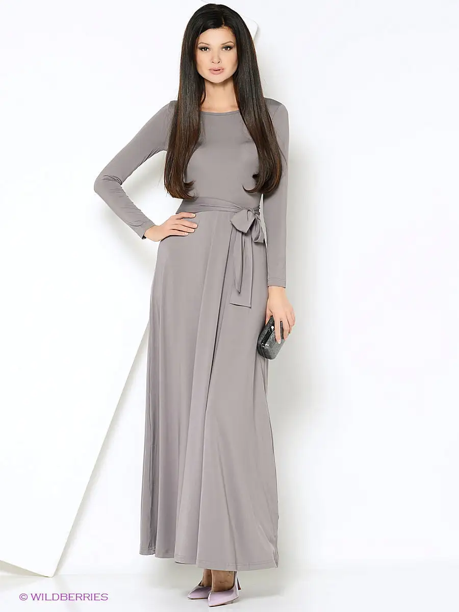 Серые длинные платья с рукавом
