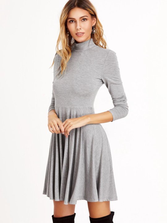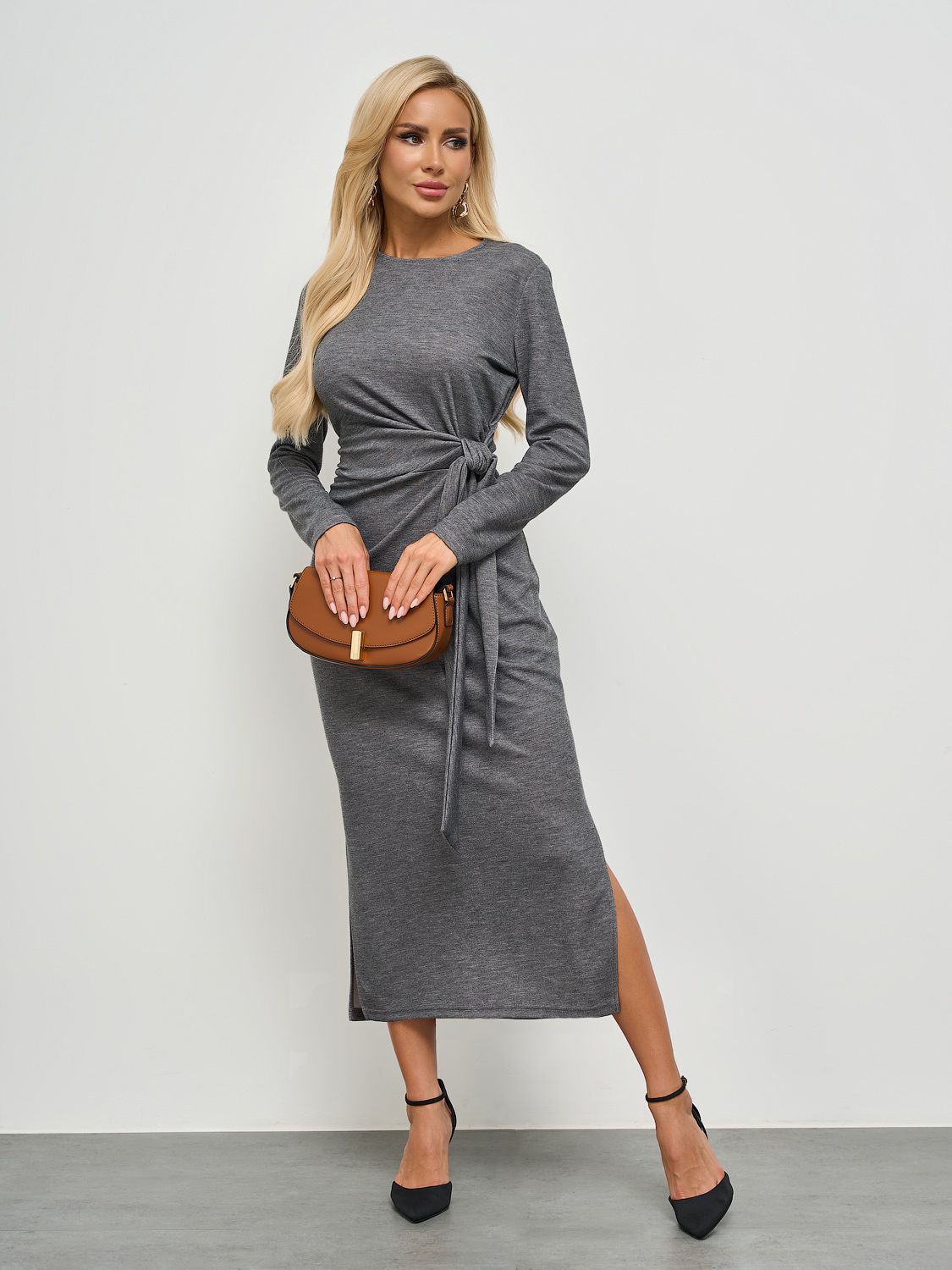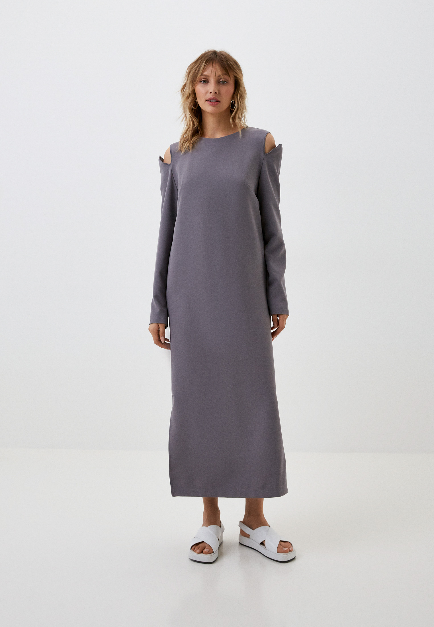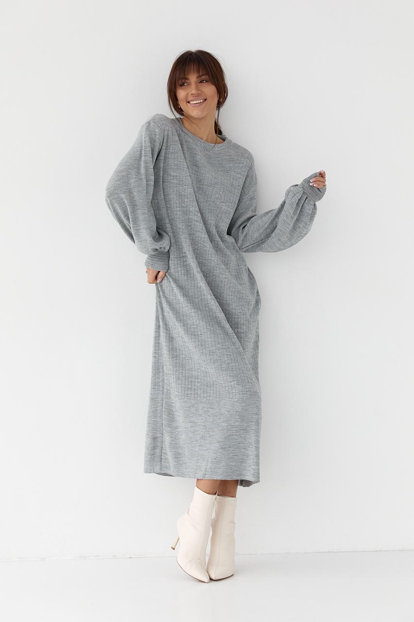 Серые длинные платья с рукавом