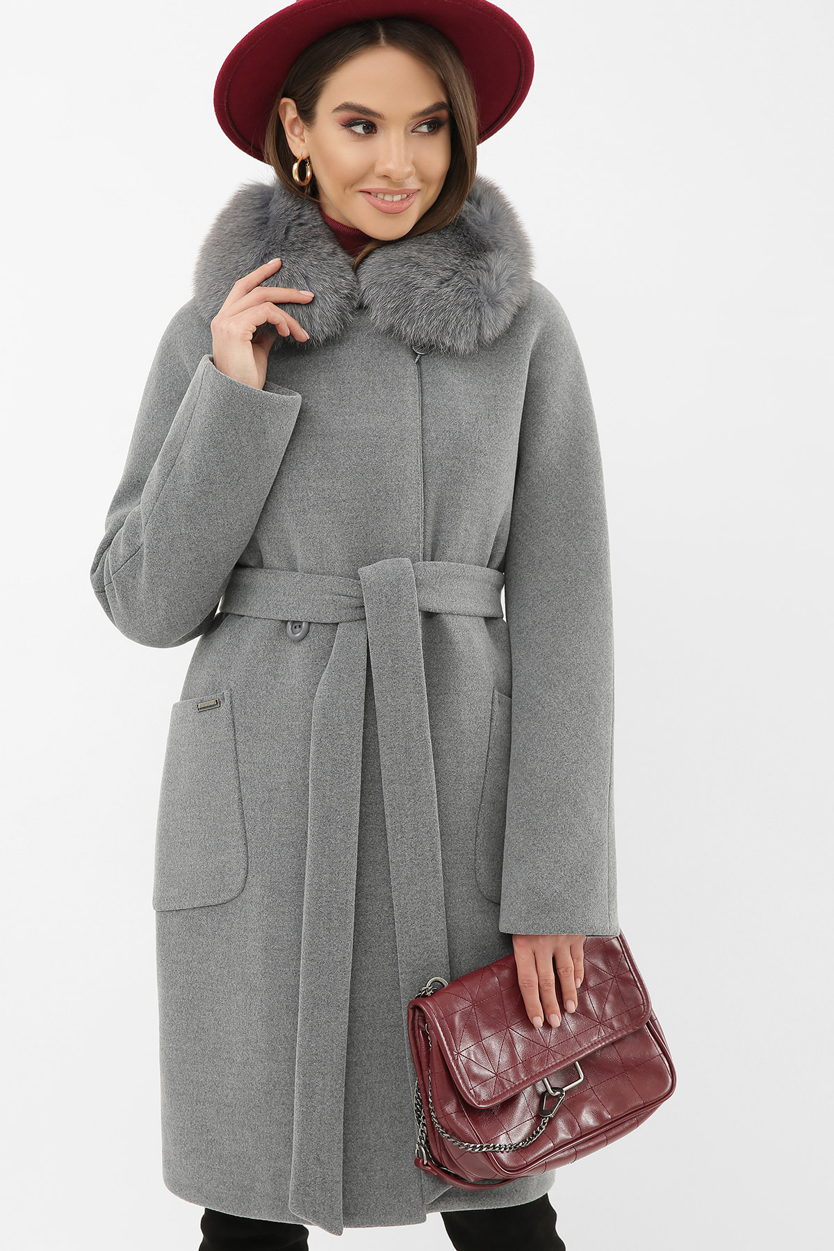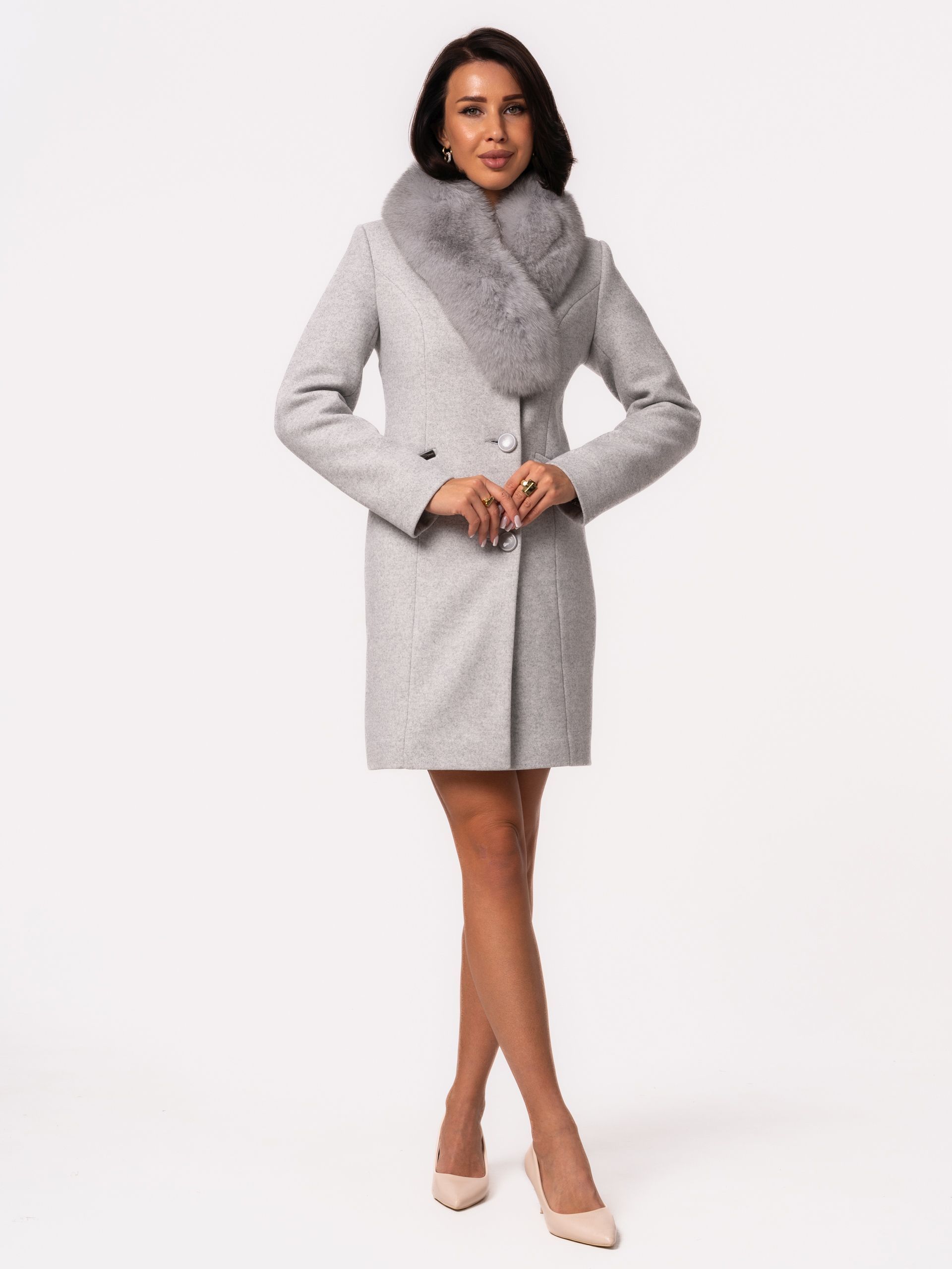 Серые пальто с мехом 85 фотографий
