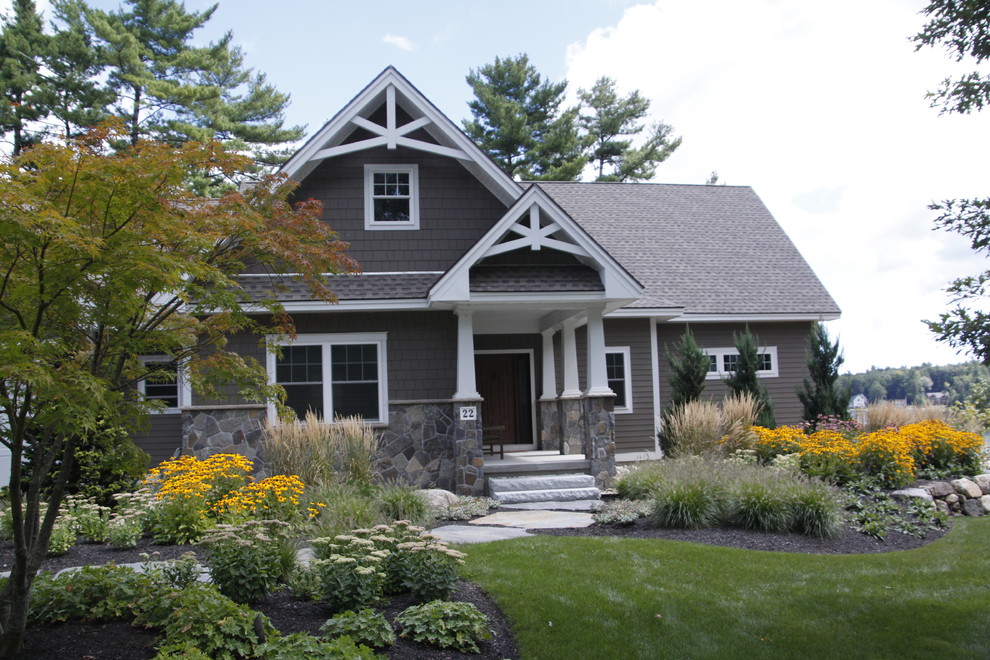 iriana88w Серый дом снаружи с черной дверью . . . . iriana88w Переднее крыльцо серого дома с белыми перилами и двумя окнами . . . . iriana88w Традиционный северо-восточный дом с голубой дверью и белыми окнами .