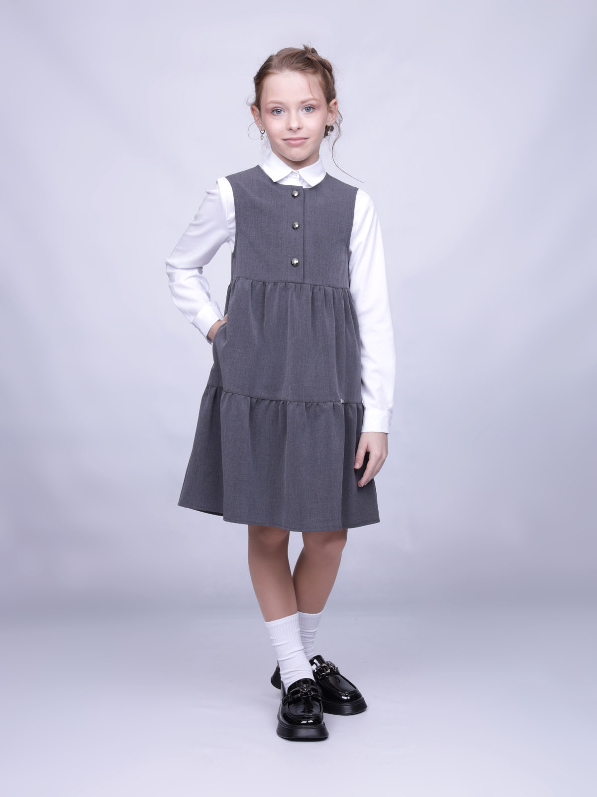 Серый сарафан девочки