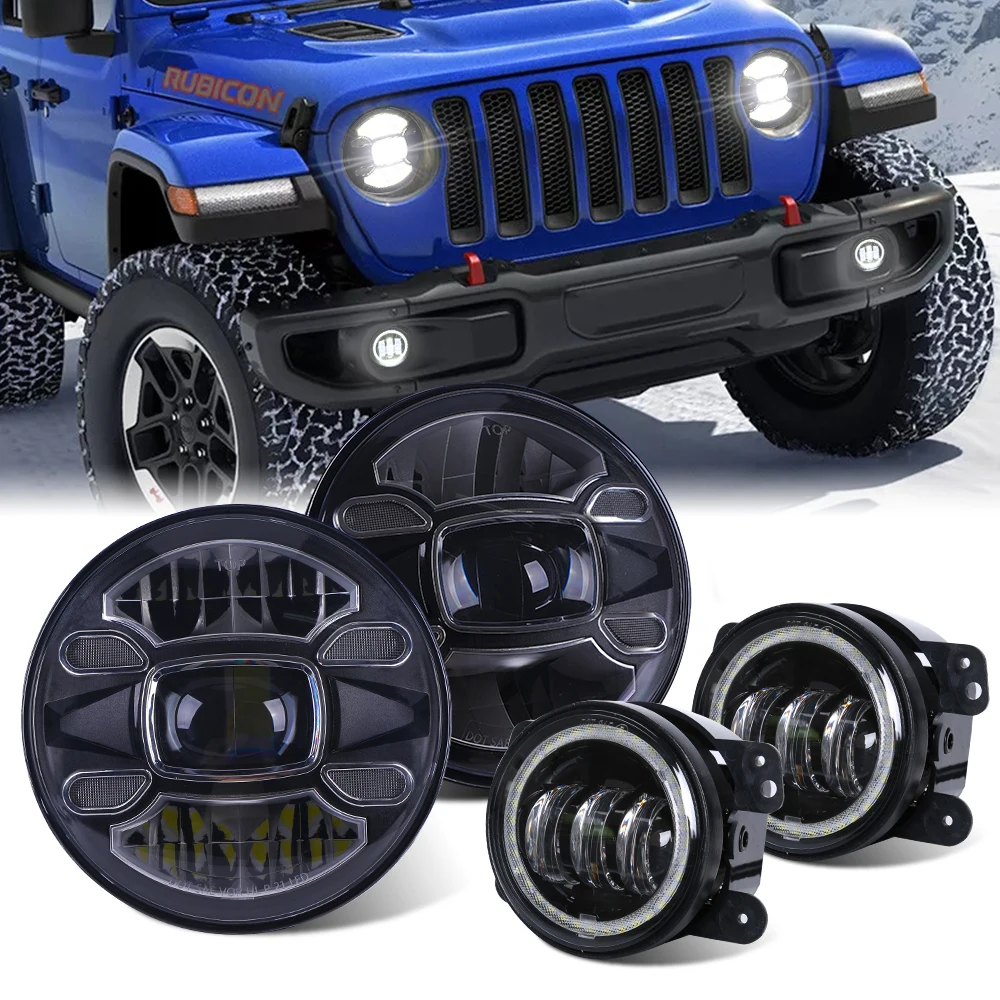 «Set For Jeep Wrangler JK JKU TJ LJ 1997-2018 7inch Round LED Headlights with Halo Ring DRL High Low Beam + 4inch LED Fog Lights» по лучшей цене на рынке! Всего за 36$ (3420рублей)