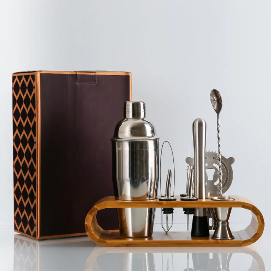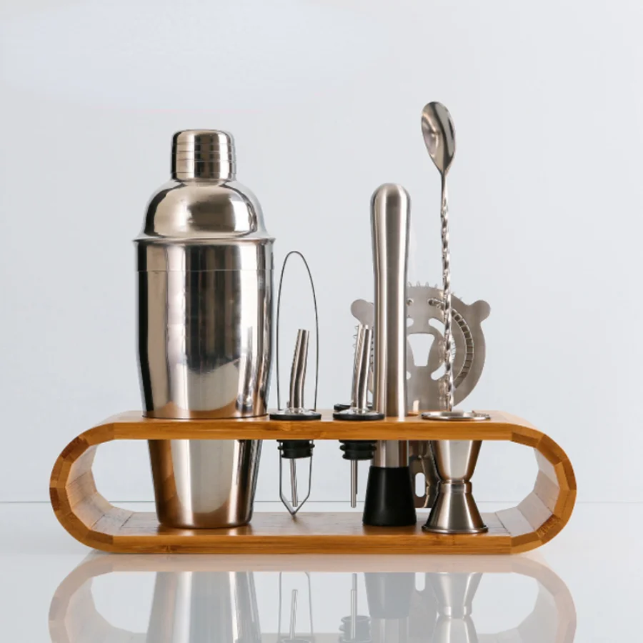 Set Of 10, Bar Set, Stainless Steel Bar Cocktail Shaker Set, Shaker Set, Storage Rack With Wood Shelf, Bar Mixing Tool Rack - Купить с бесплатной доставкой
