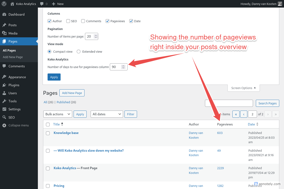 Setting page view