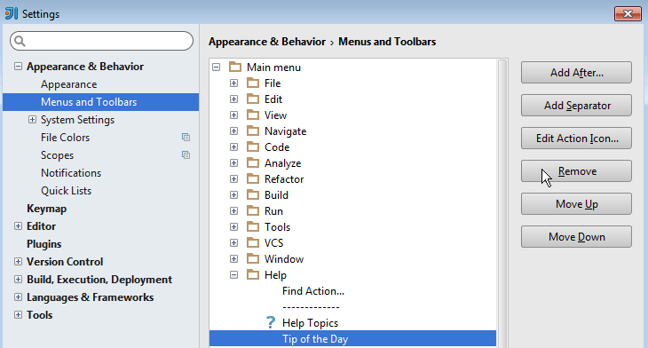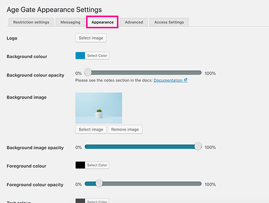 Settings appearance