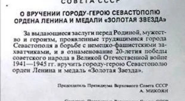 Севастополь город герой когда присвоено