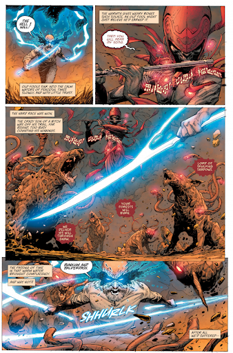 Рік Ремендер вже давно зарекомендував себе як автор, який пише чудові сценарії та вміє розкривати персонажів, як ніхто інший. Він наповнює цей фентезійний світ глибоко пропрацьованими та цікавими героями, від яких неможливо відірвати погляд. За ними цікаво спостерігати навіть коли вони сидять біля багаття або лагодять зламаний візок. Один з найкращих інструментів в його арсеналі - це несподівані повороти сюжету, від яких голова йде обертом. Коли думаєш, що в гіршій ситуації опинитися просто неможливо, трапляється нова халепа.