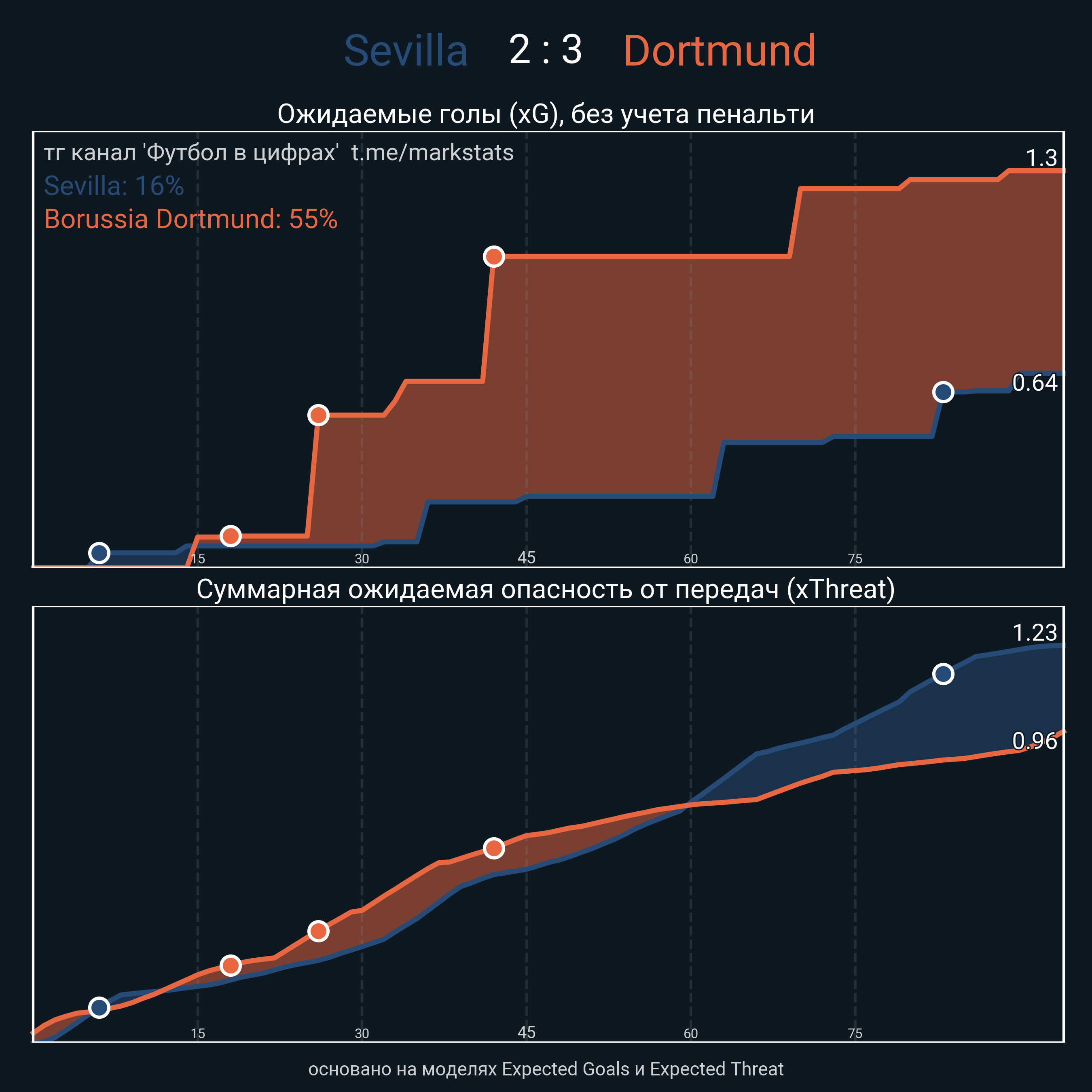 ▪ xThreat без учета угловых: 1.13 - 0.75