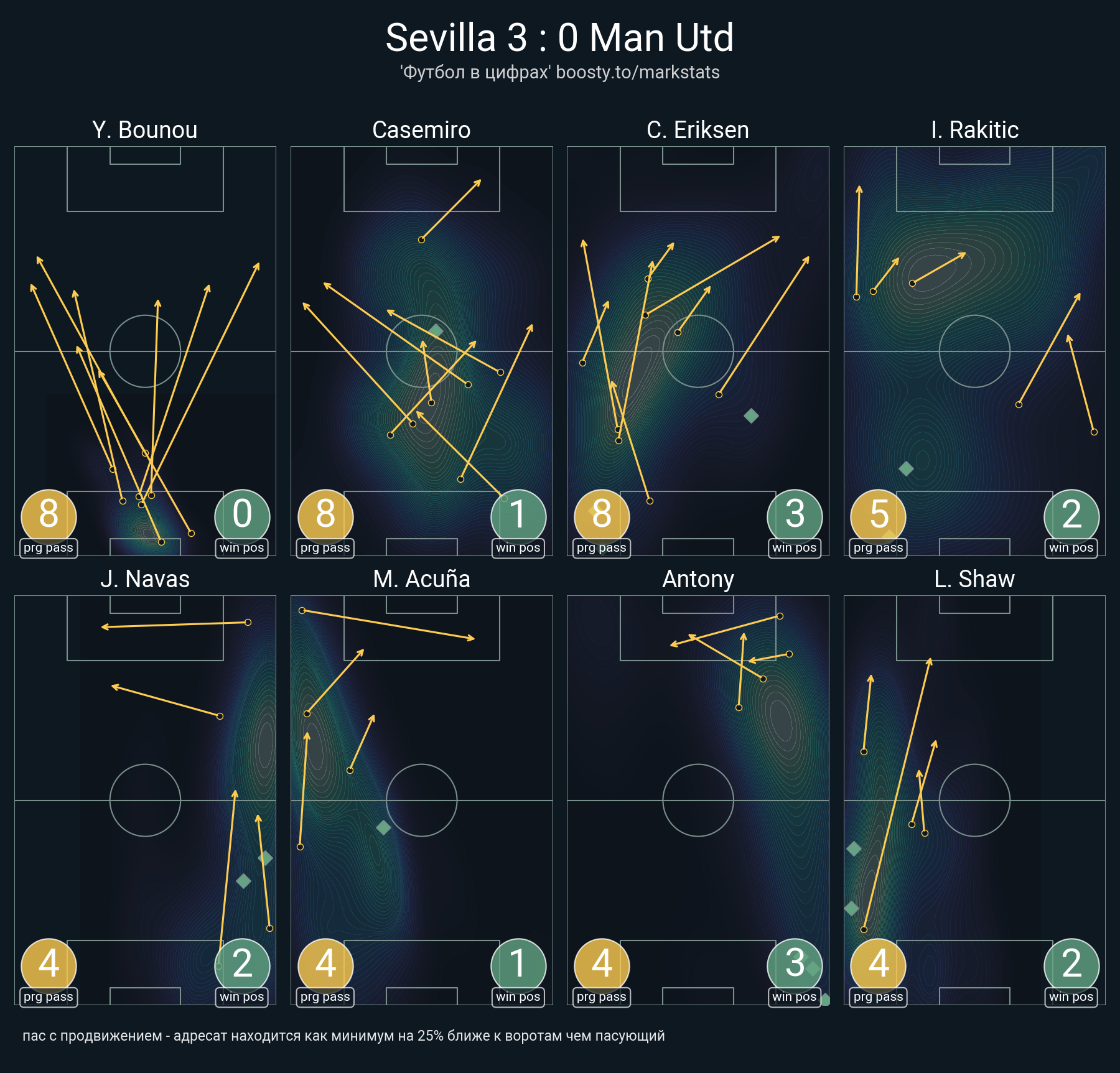 52 успешных передач из 68 попыток (8 с продвижением, 8 на трети соперника)