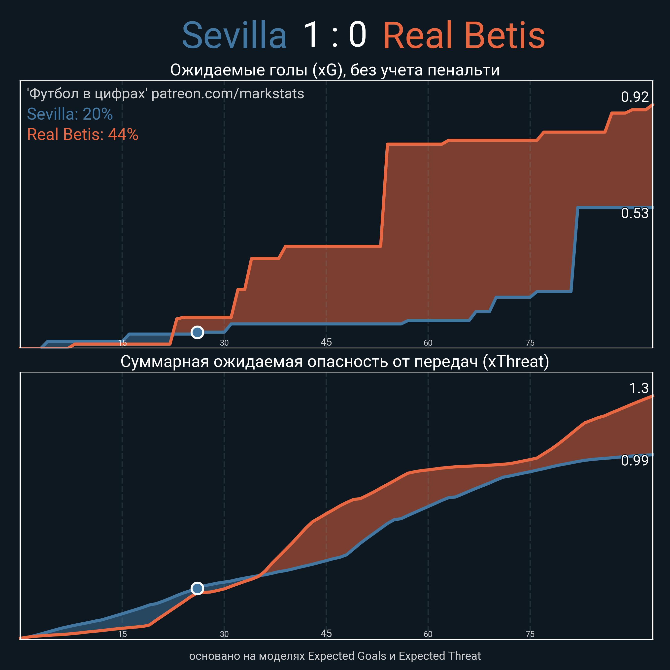 ▪ Ожидаемые голы (NPxG): 0.53 - 0.92