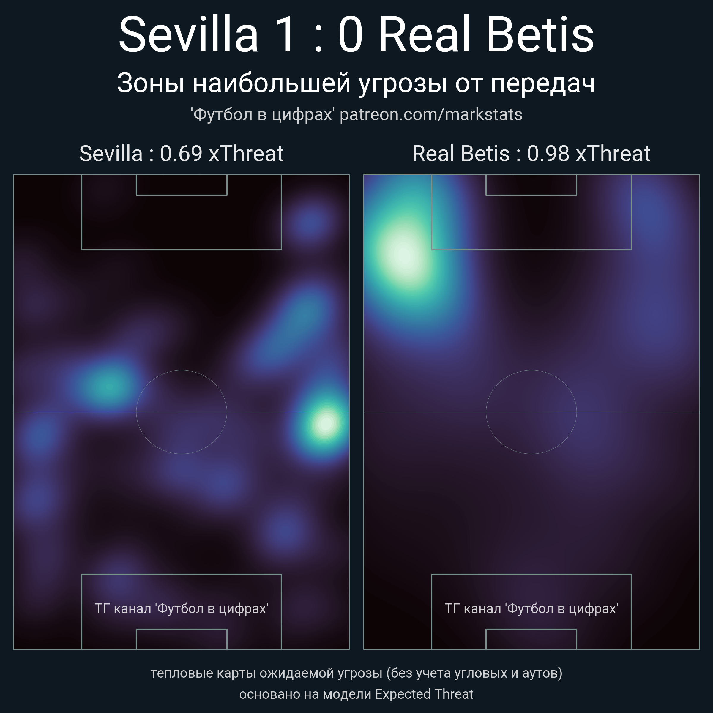 ▪ xThreat без учета угловых: 0.69 - 0.98
